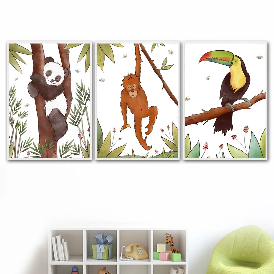 Настенные картины, декор детской комнаты, Мультяшные 3D Животные, с...