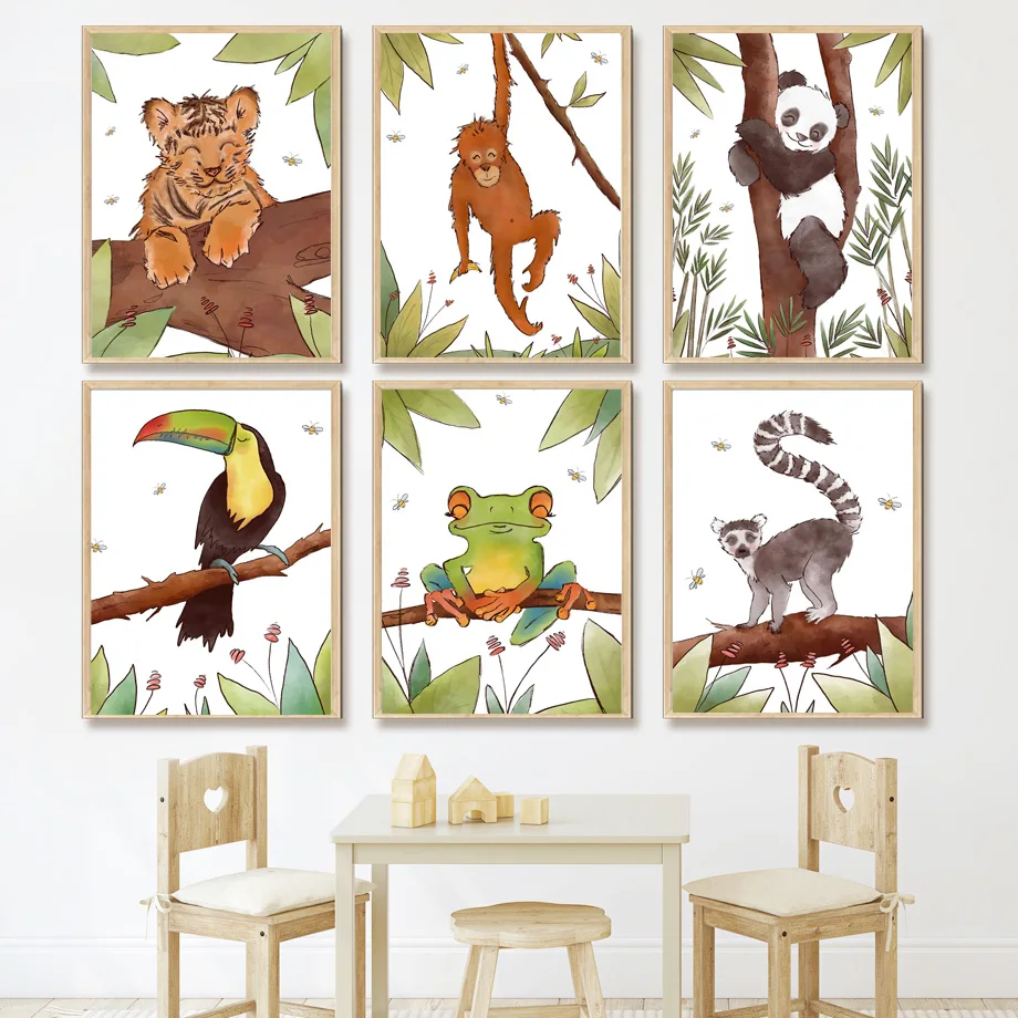 Настенная картина с изображением Льва, жирафа, обезьяны, ленивости,...