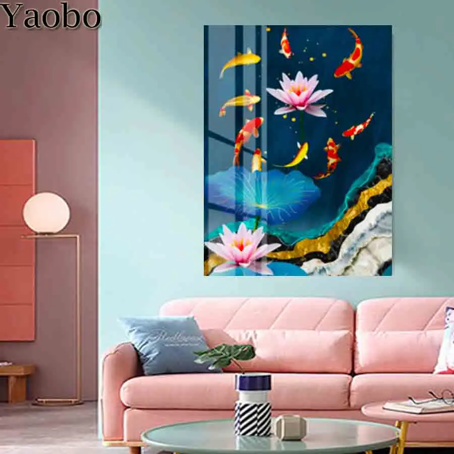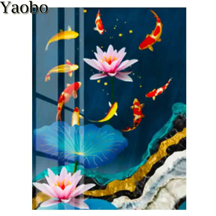 Алмазная 5d-картина с изображением карпа лотоса, алмазная вышивка сделай сам, мозаика с цветами, вышивка крестиком, украшение для дома, ручная работа, подарок, новинка