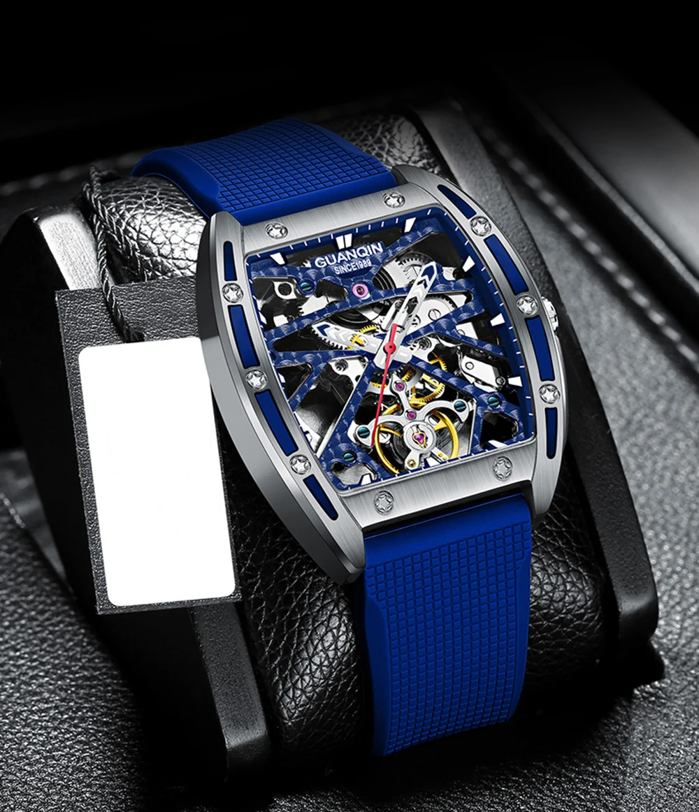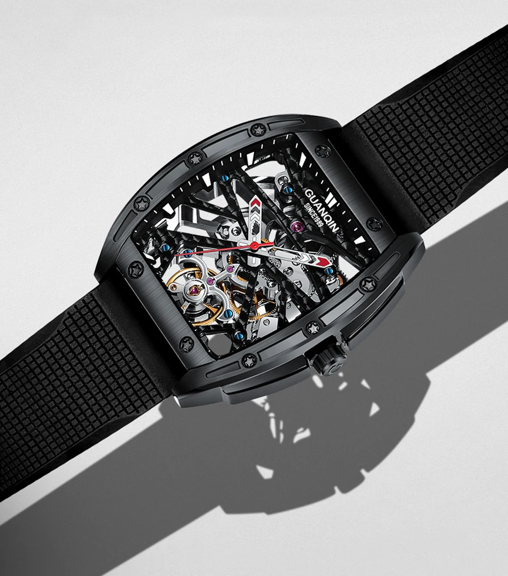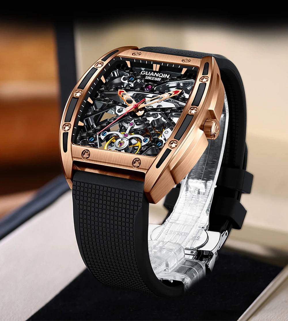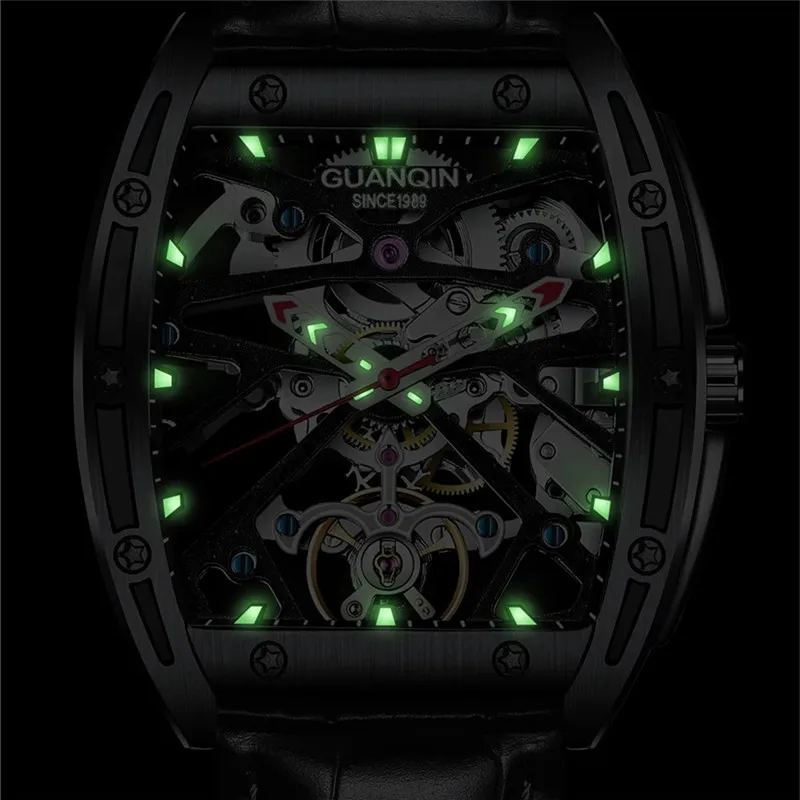 Новинка 2021, мужские механические часы GUANQIN с турбийоном, Роскошные автоматические часы-скелетоны для мужчин, водонепроницаемые часы ведущей марки 100 м