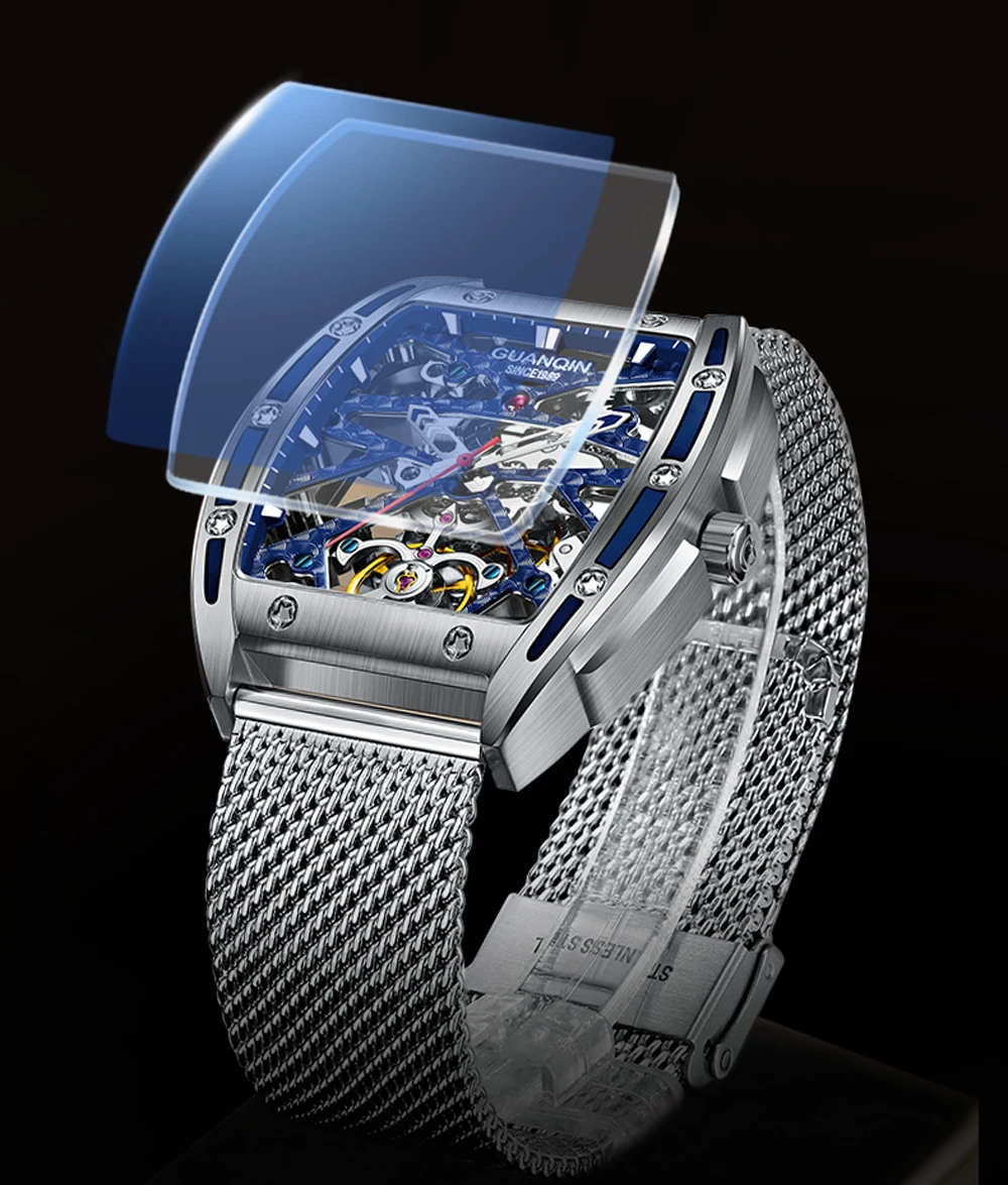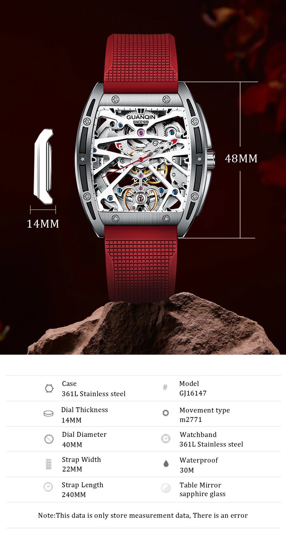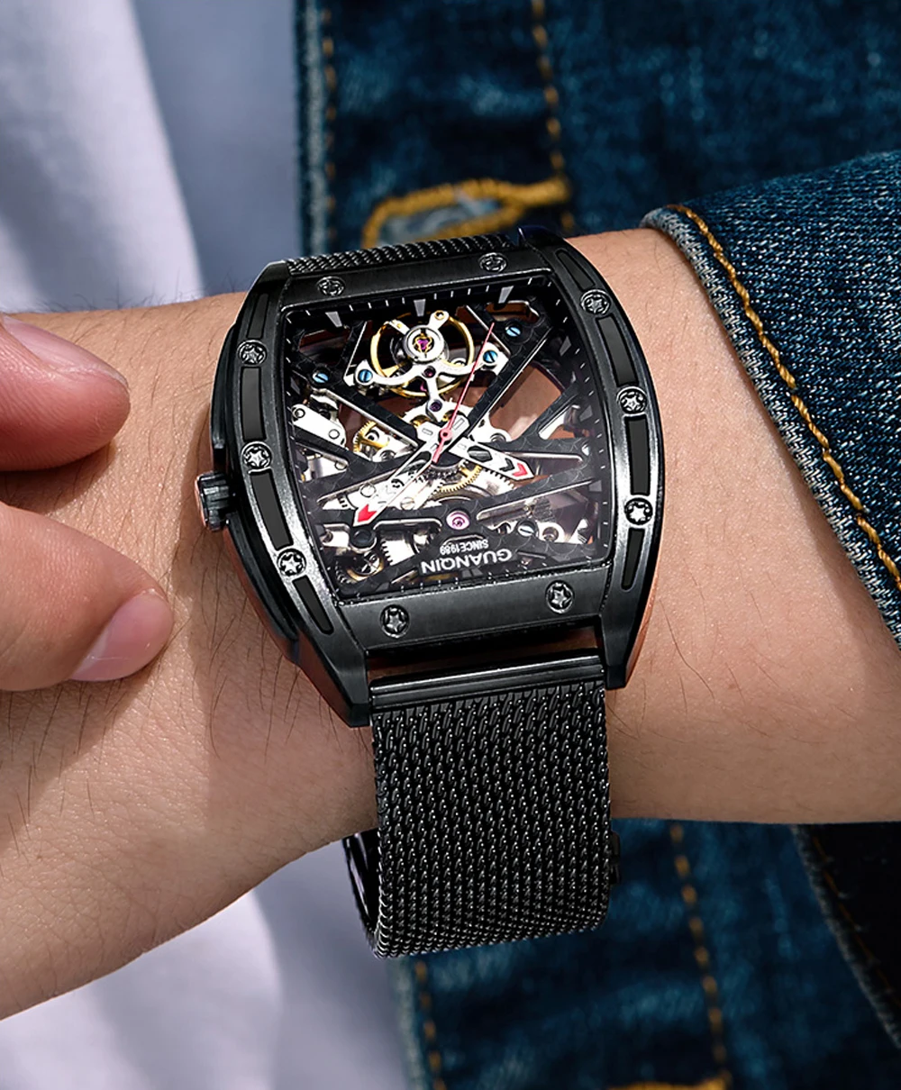 Новинка 2021, мужские механические часы GUANQIN с турбийоном, Роскошные автоматические часы-скелетоны для мужчин, водонепроницаемые часы ведущей марки 100 м