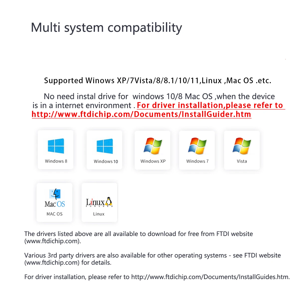 Доступны драйверы, которые позволяют устройствам FTDI работать со следующими операционными системами: