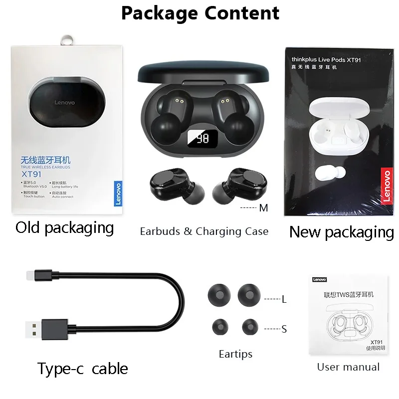 Новые оригинальные беспроводные Bluetooth наушники Lenovo XT91 TWS ...