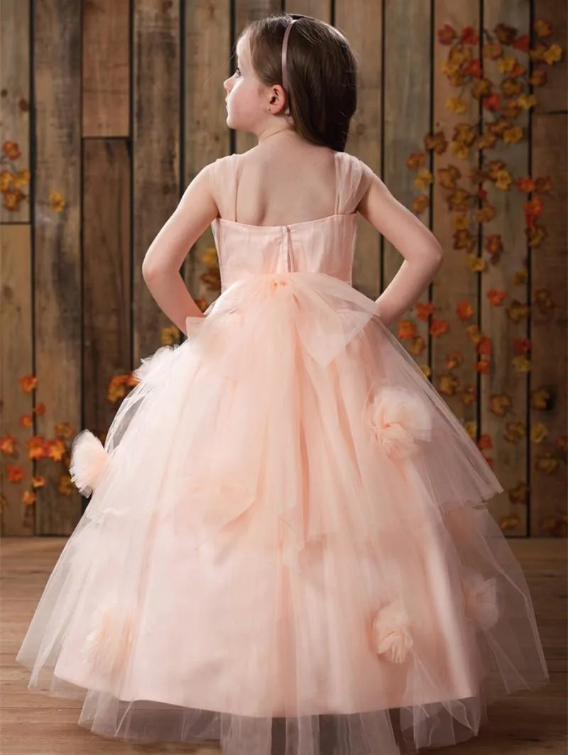 Новинка, платья для девочек с цветами и кукольным тортом, для особых случаев, для свадеб, с оборками, Детские платья для конкурса, кружевные платья длиной в Пол с цветами Вечерние