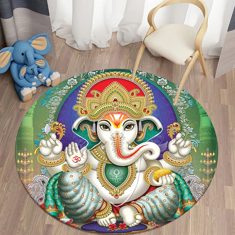 Круглые ковры Ganesha для гостиной, спальни, мягкий фланелевый коврик, ковер в богемном стиле, домашний декор