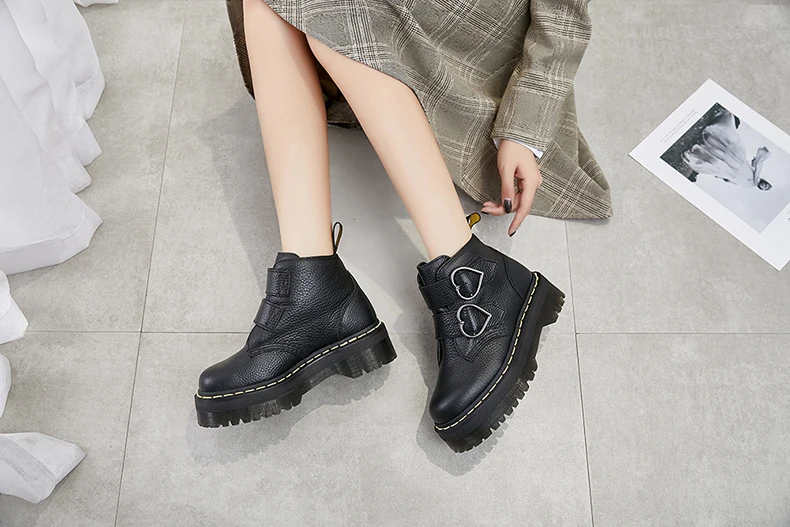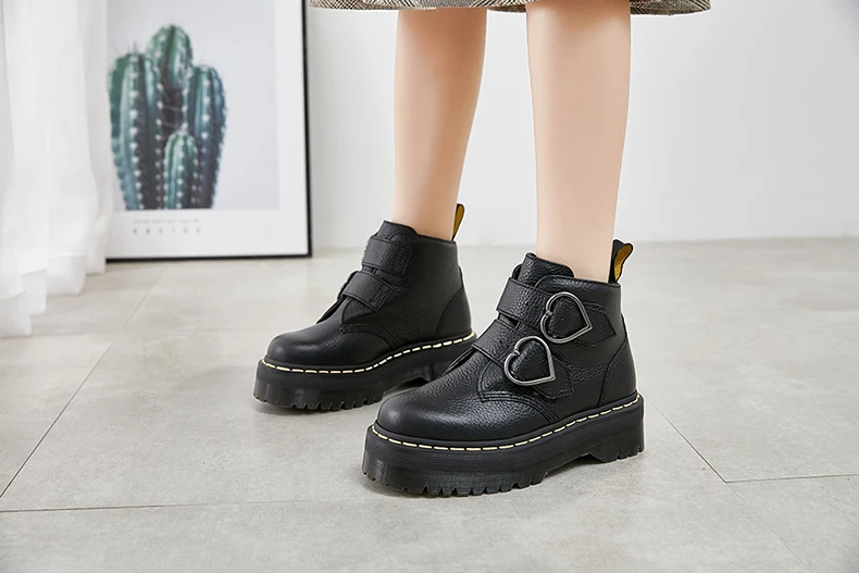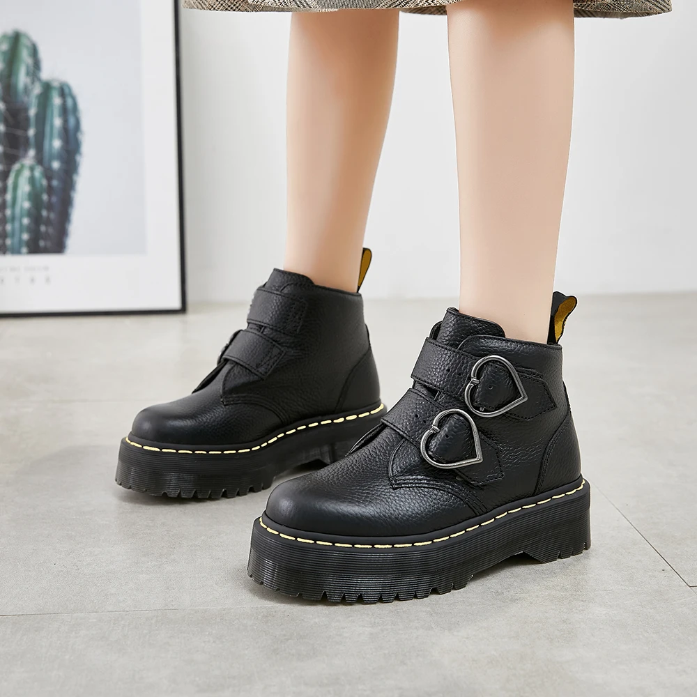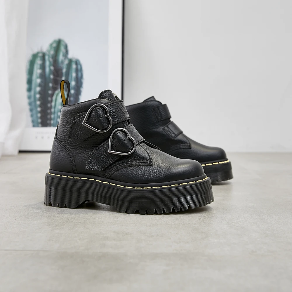Женские кожаные ботинки martens DEVON HEART, ботинки на платформе, ботильоны, ботинки с личи, флисовая обувь Nappa, увеличивающая рост