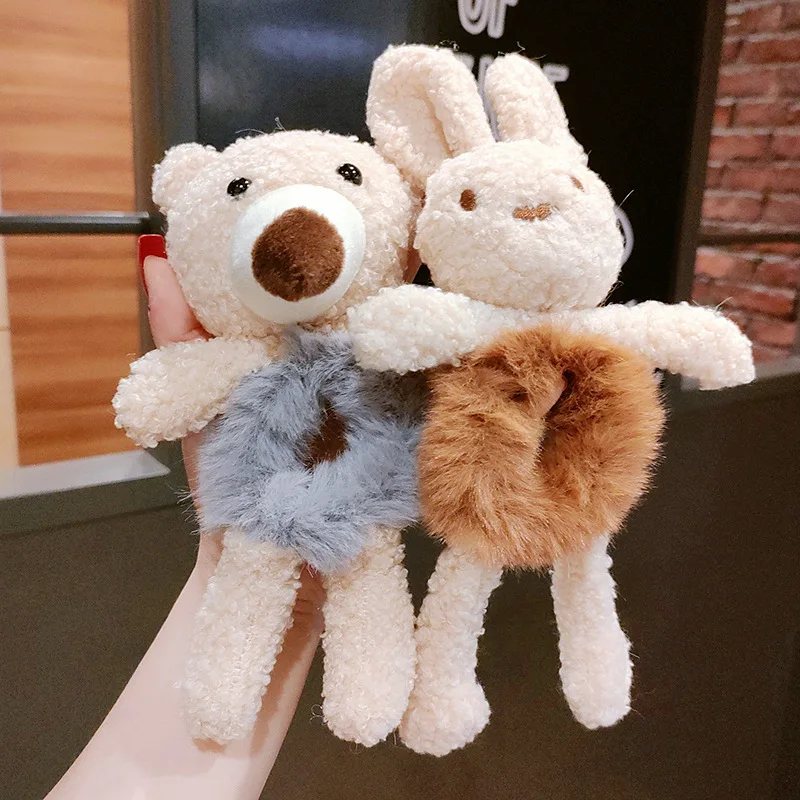 Женская резинка для волос с большим плюшевым медведем, кроликом