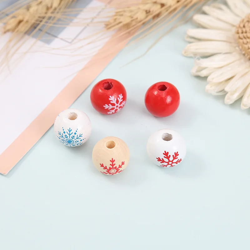 20 шт., 16 мм, рождественские деревянные бусины в виде шариков