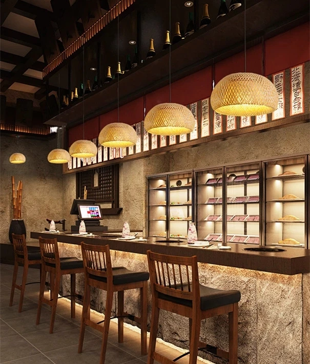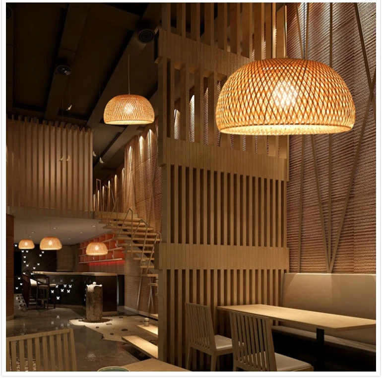 Люстра ручной работы из бамбука в японском стиле, креативная потолочная лампа, декоративная лампа из ротанга, плетеная потолочная лампа для ресторана