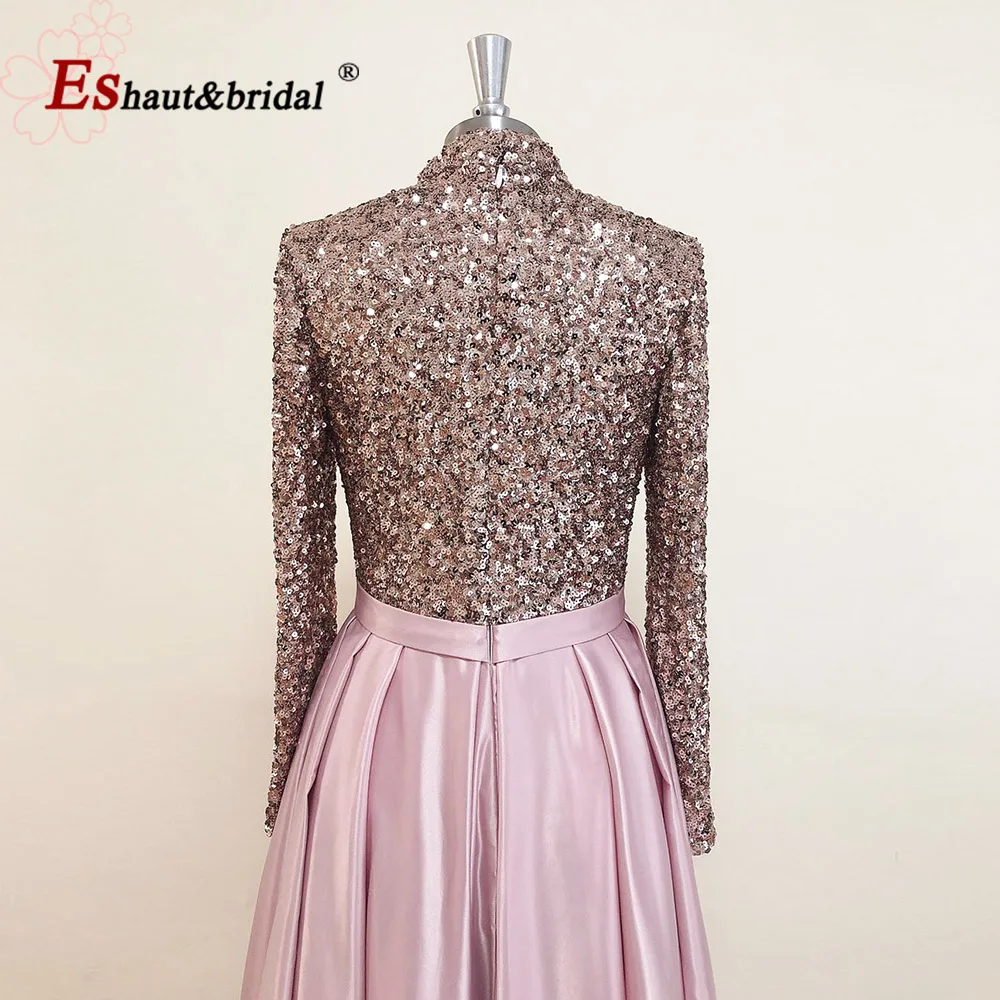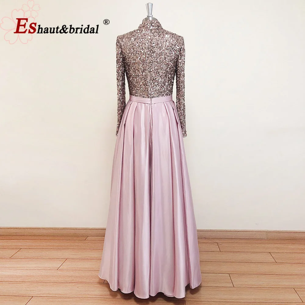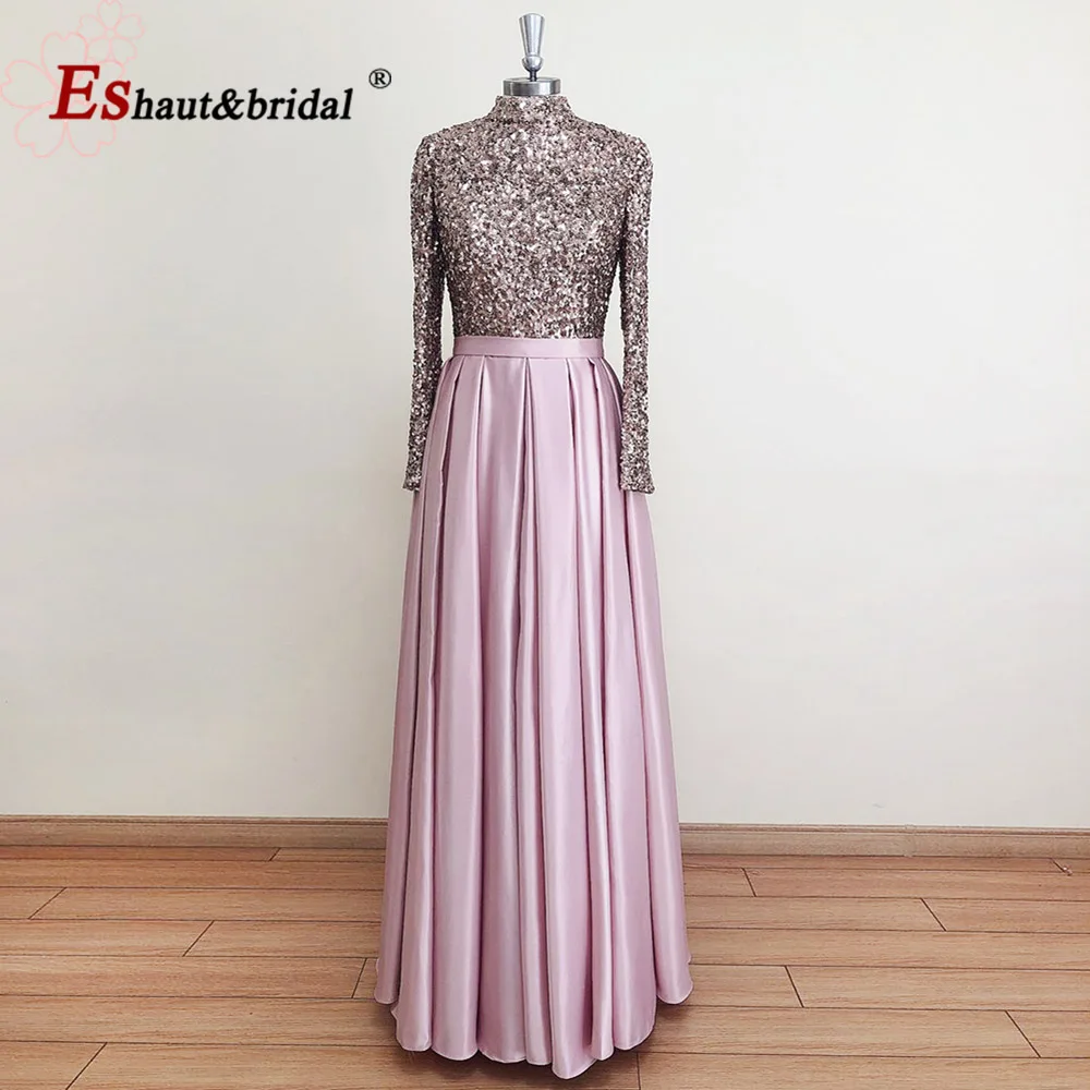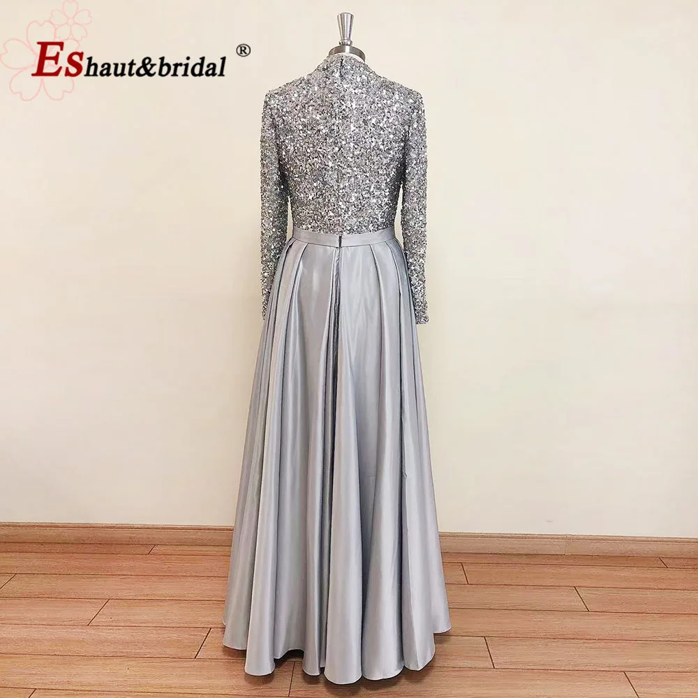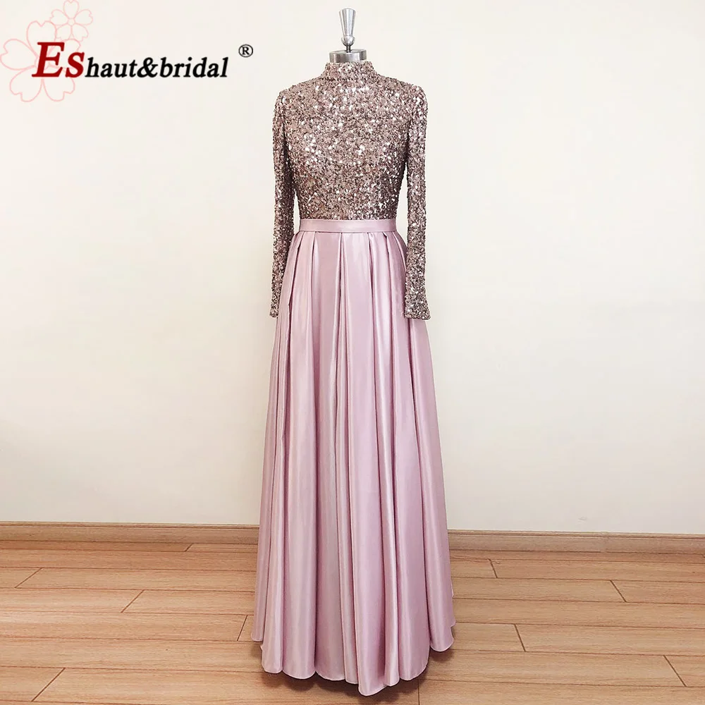 Женское атласное вечернее платье, роскошное мусульманское платье с пайетками, с длинным рукавом, атласное, для свадьбы, выпускного вечера, 2021