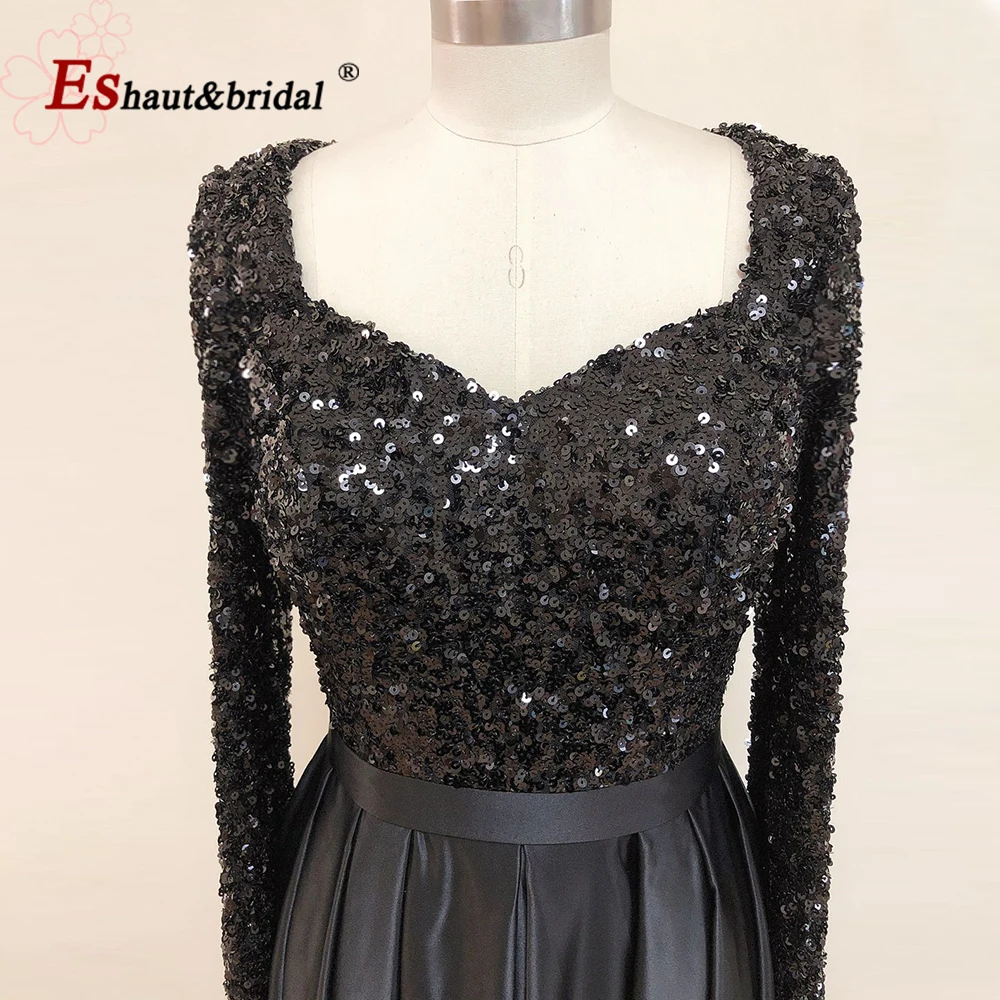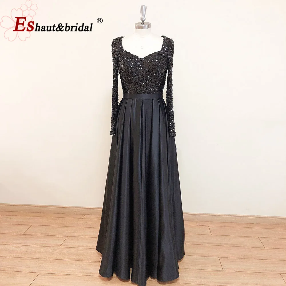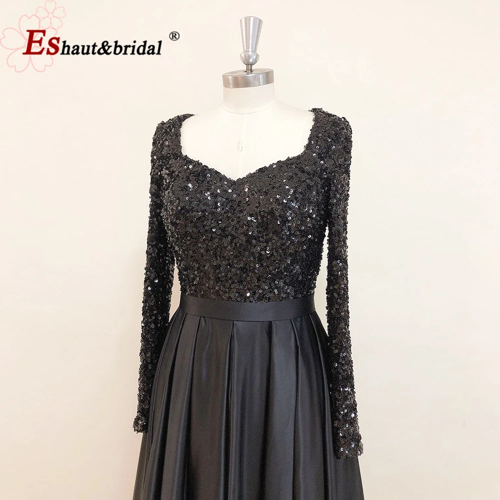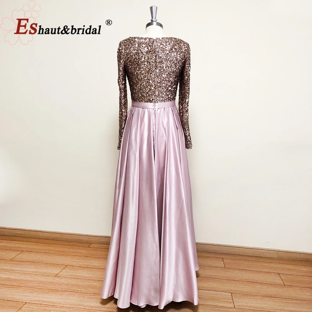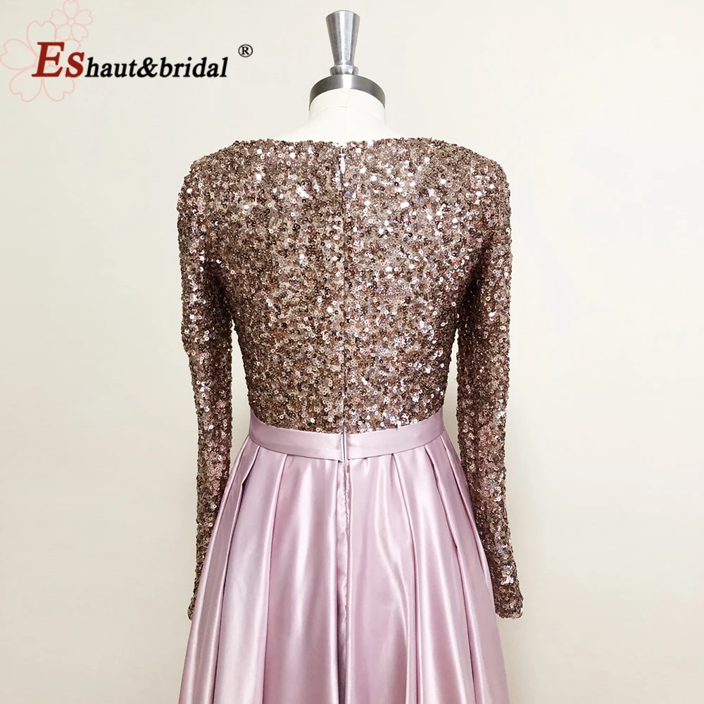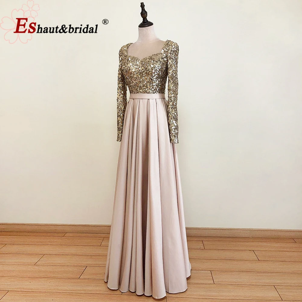 Женское атласное вечернее платье, роскошное мусульманское платье с пайетками, с длинным рукавом, атласное, для свадьбы, выпускного вечера, 2021
