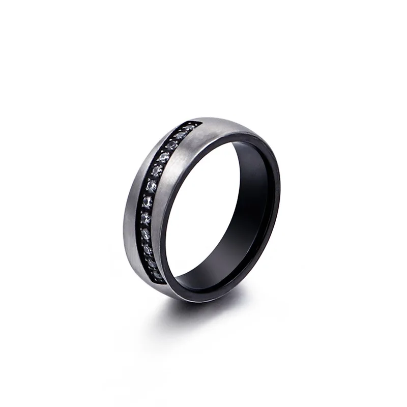 Классические Вечерние кольца из черного титана 8 мм со скошенным по...