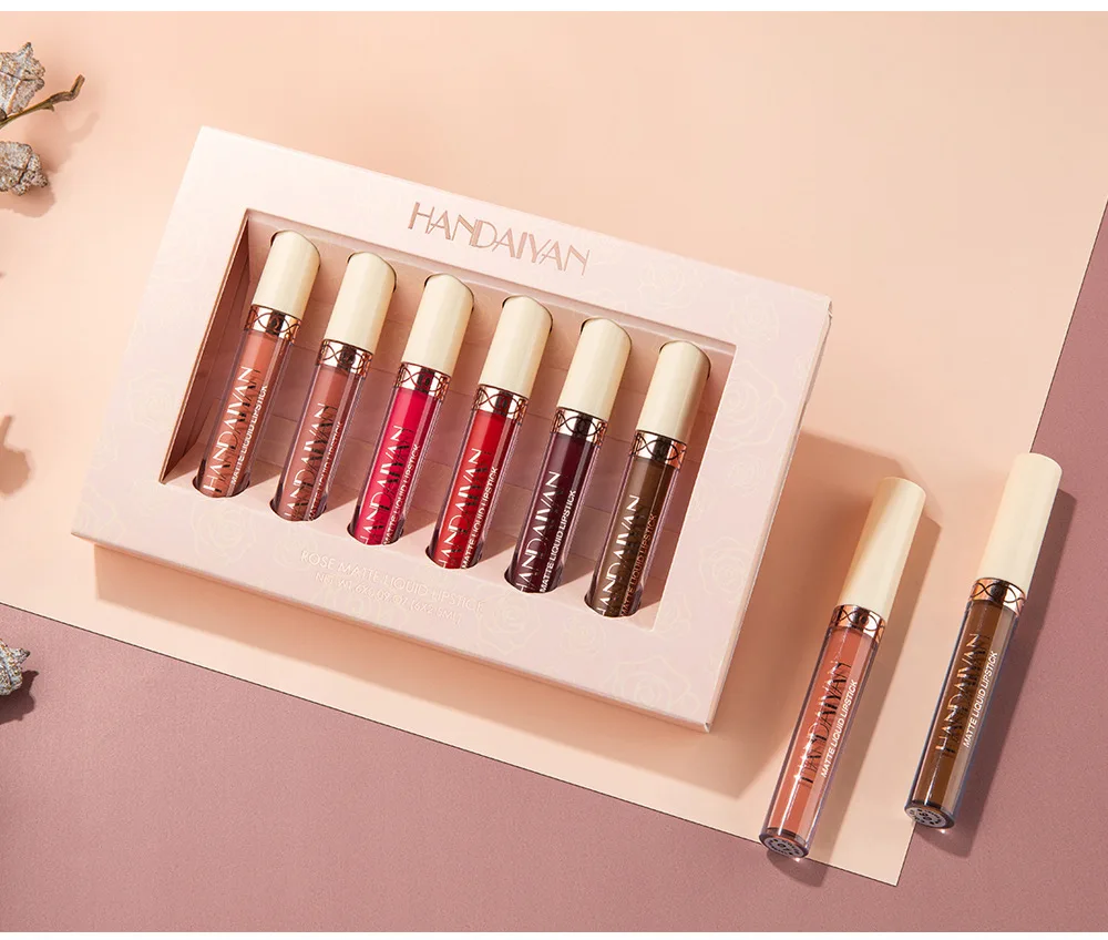 Матовая жидкая помада HANDAIYAN, 6 цветов в коробке, набор для маки...