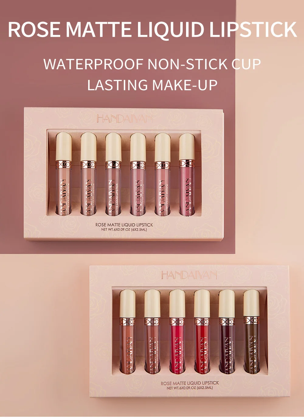 Набор для макияжа HANDAIYAN, Матовая жидкая помада, набор 6 цветовк...