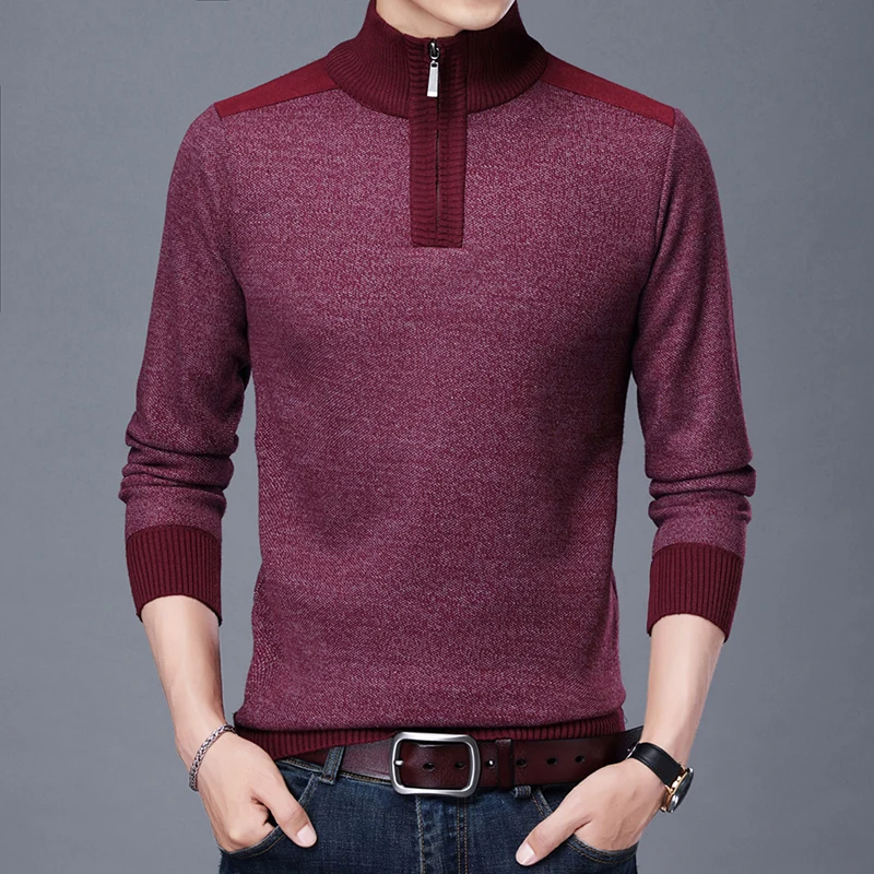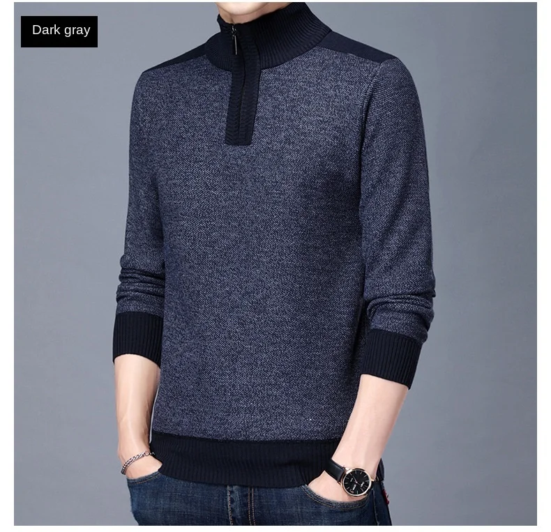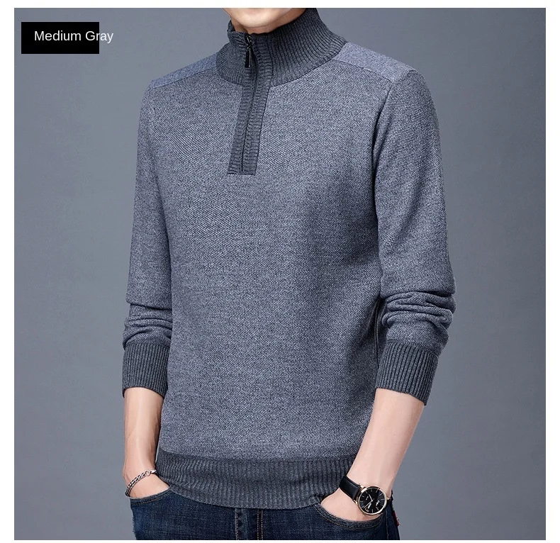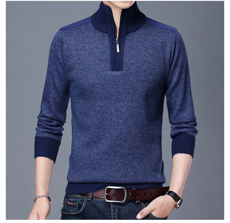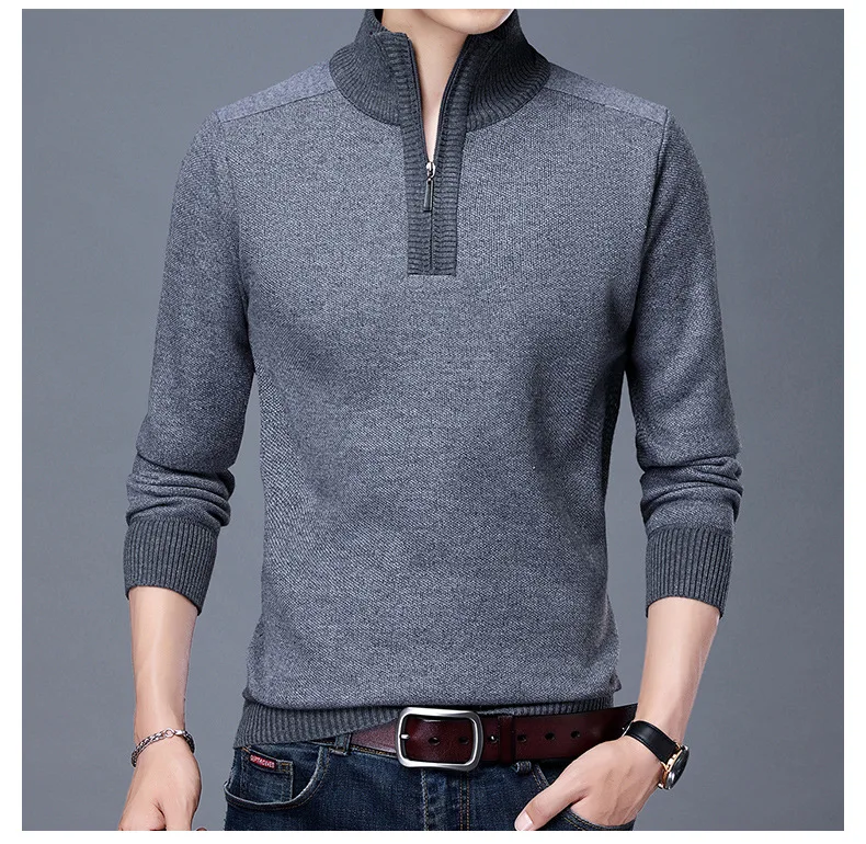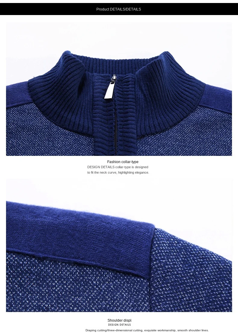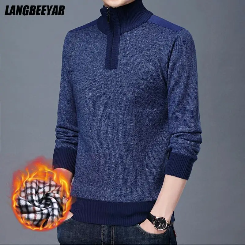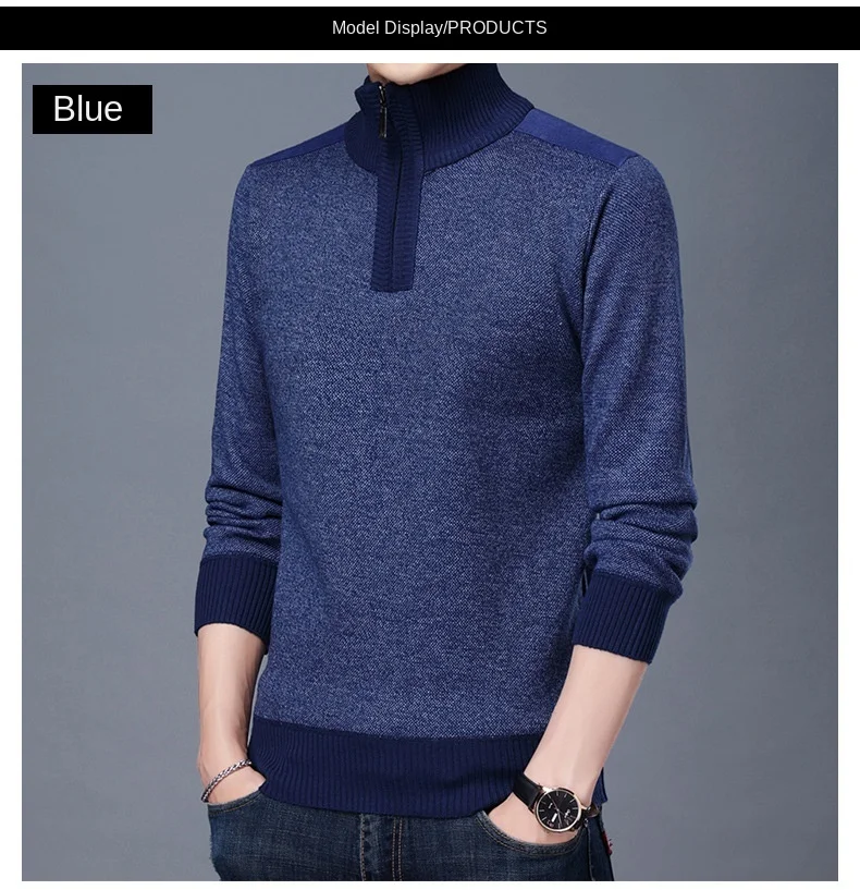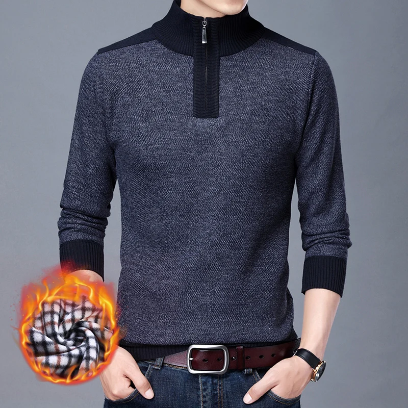 Теплый толстый бархатный новый модный брендовый вязаный пуловер на молнии, свитер с высоким воротником, осенне-зимний Повседневный джемпер высокого качества