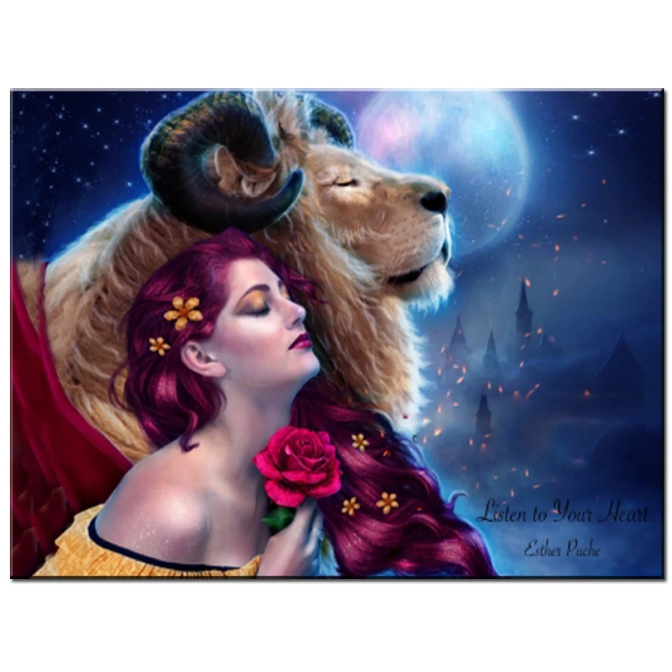 Алмазная живопись мультфильм красавица чудовище полный квадрат круглый 5D Сделай Сам искусство подарок вышивка крестиком Мозаика домашний декор X131
