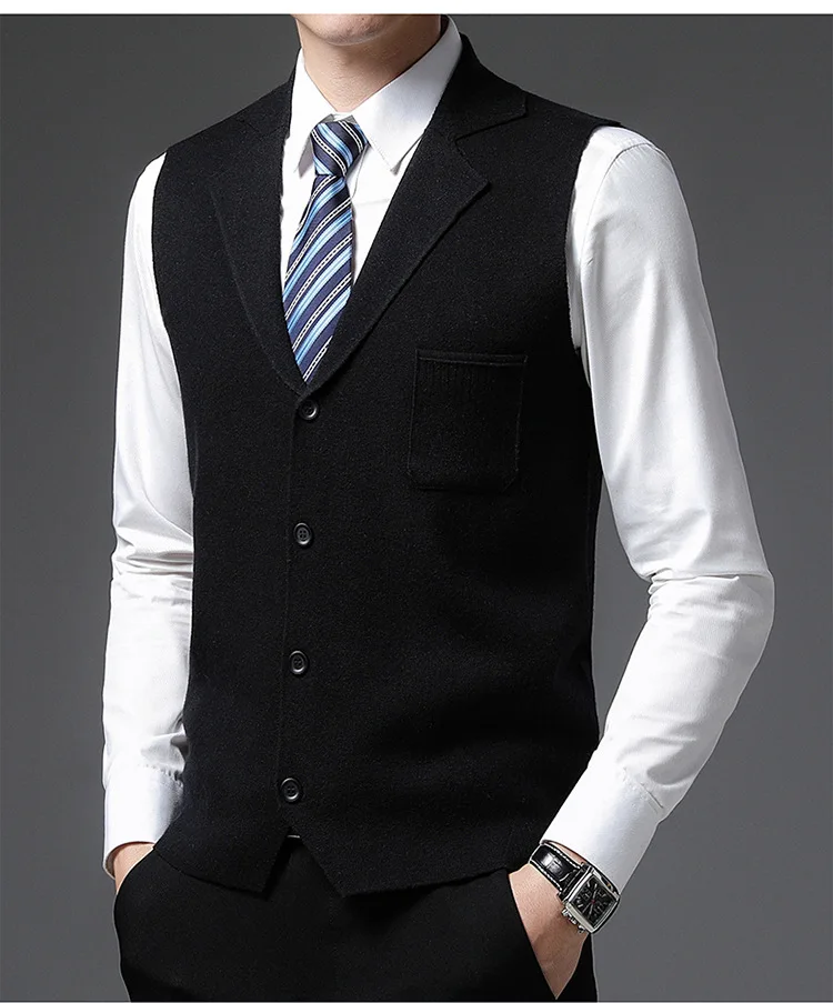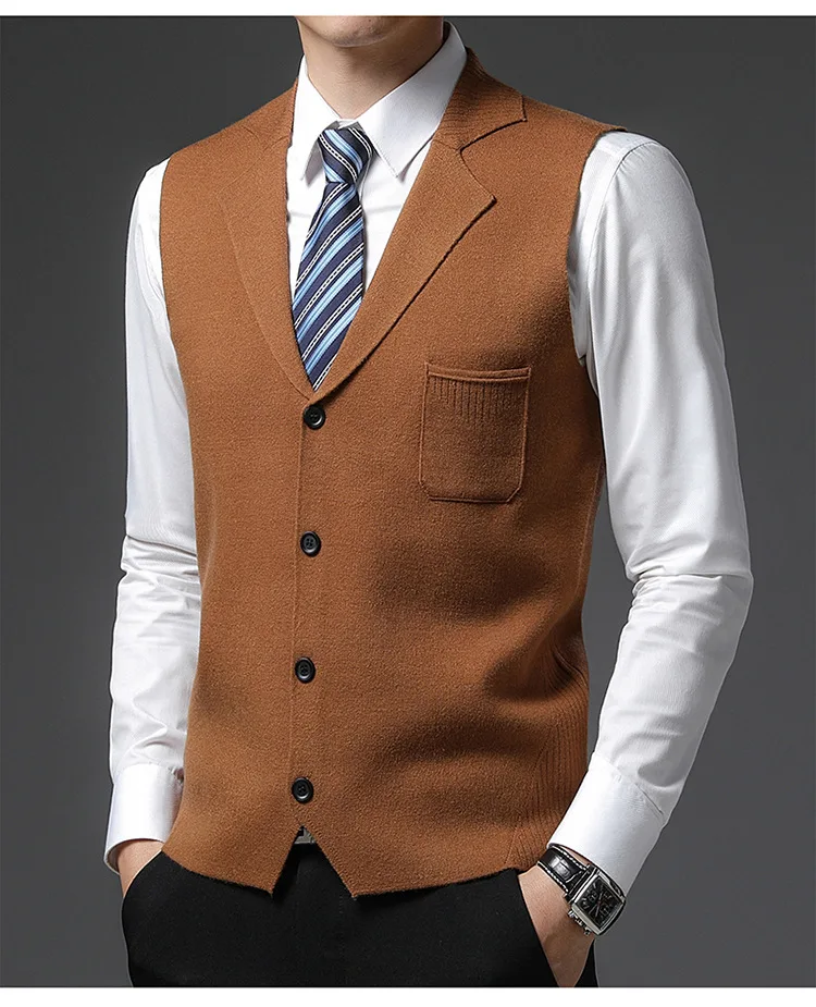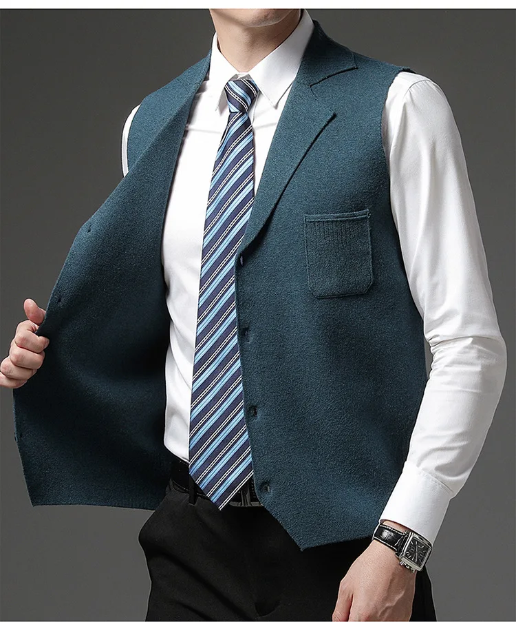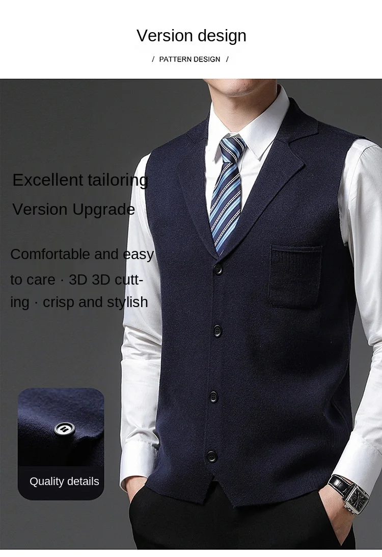 Пуловер мужской с V-образным вырезом, 6% шерсть, без рукавов