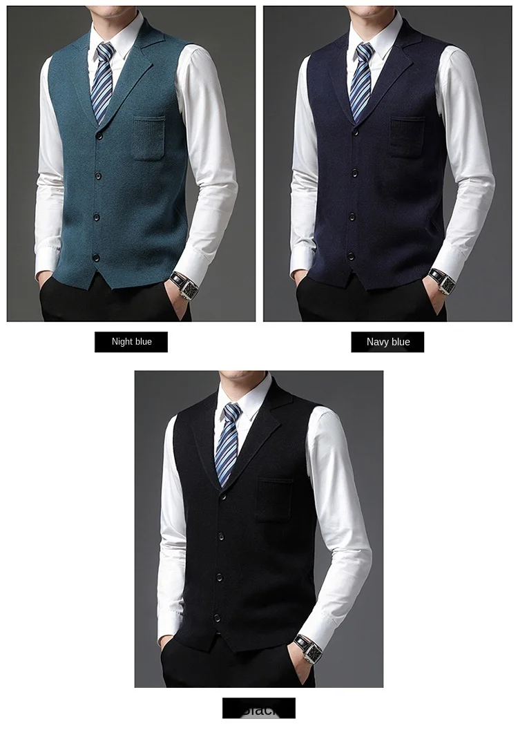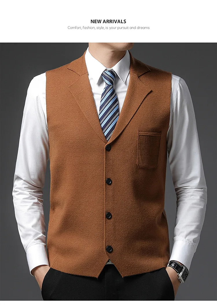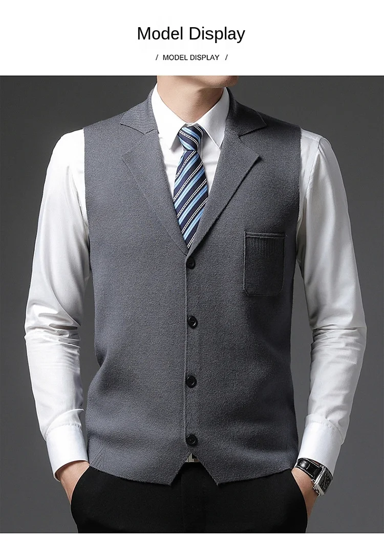 Мужской однотонный пуловер без рукавов, повседневный вязаный жилет ...