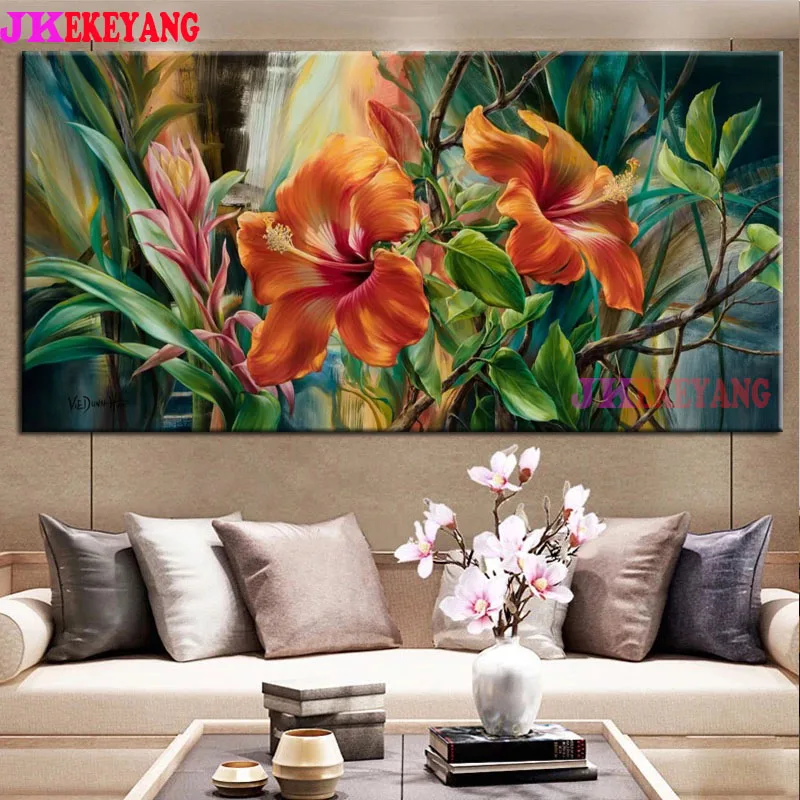 Большой 5D алмаз "сделай сам" живопись, красные цветы алмаз вышивка-мозаика стразами Вышивка крестом Y4612