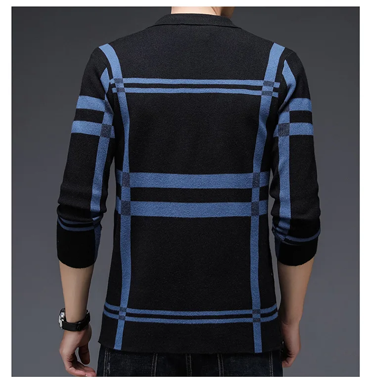 Мужской трикотажный пуловер с воротником, Черный Повседневный джемпер