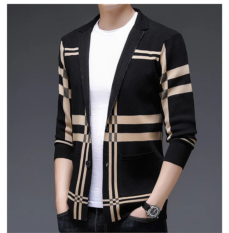 Высокое качество, новый дизайнерский роскошный бренд, Повседневная модная клетчатая приталенная мужская Трикотажная куртка, пиджак, элегантная мужская одежда 2022