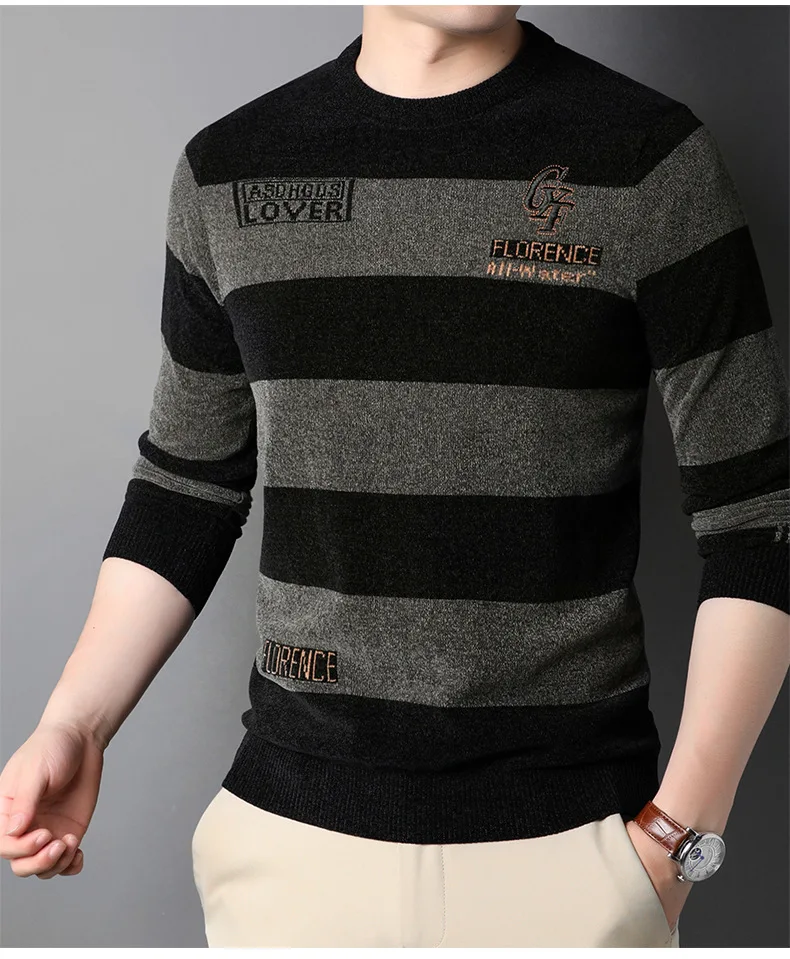 Высокое качество, толстый теплый новый осенне-зимний модный брендовый однотонный трикотажный пуловер, мужской полосатый свитер, повседневная мужская одежда 2022