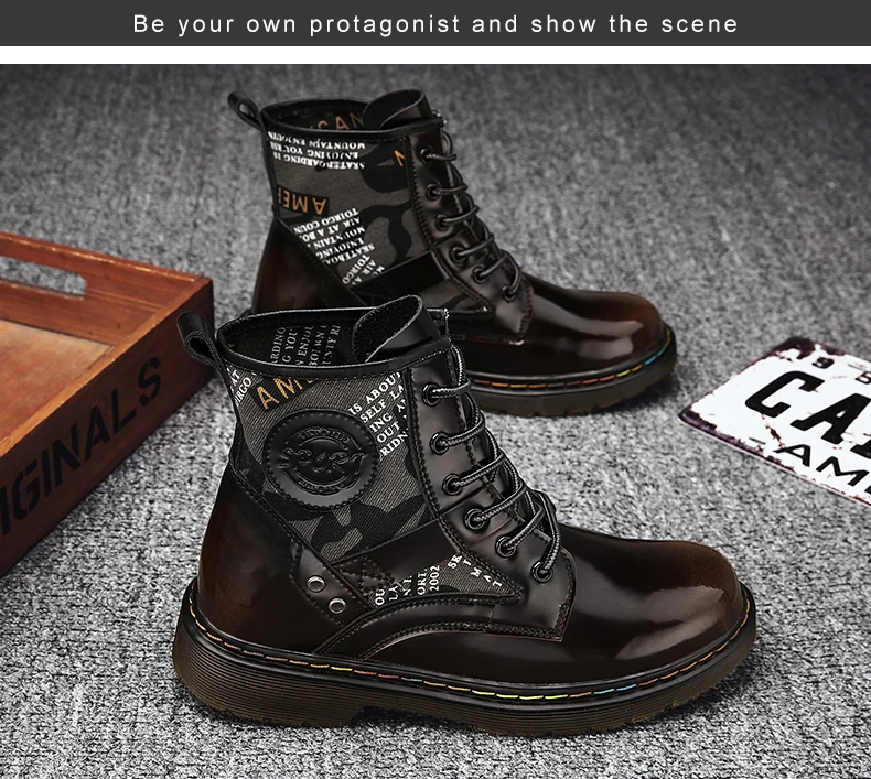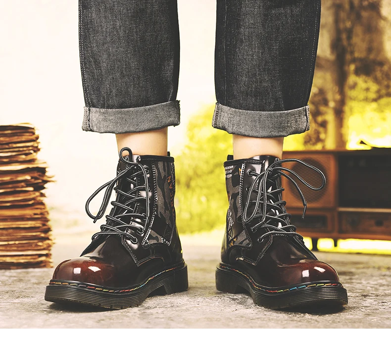 Модные женские ботинки на все сезоны, Женская Повседневная мотоциклетная обувь, глянцевая обувь для пар, мужские военные тактические ботильоны унисекс