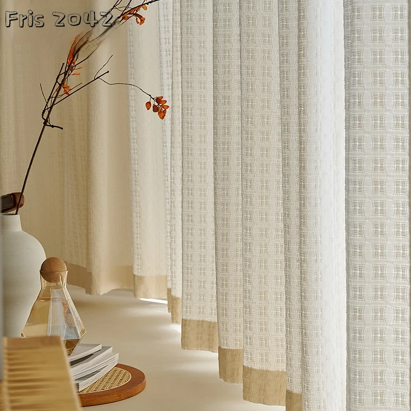 Занавески из хлопка и льна для гостиной, прозрачные и непрозрачные шторы из белого газа кремового цвета, в японском стиле, для столовой, спальни