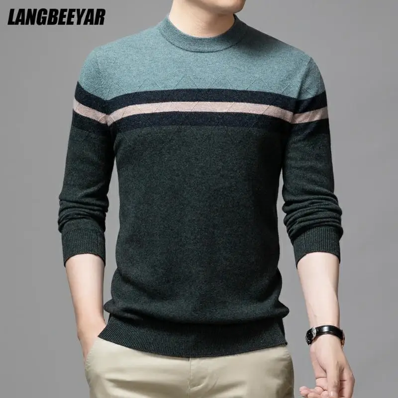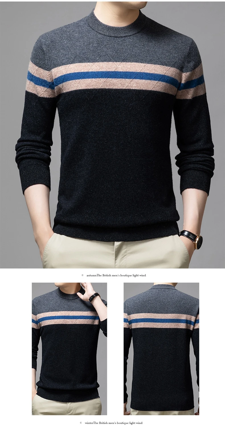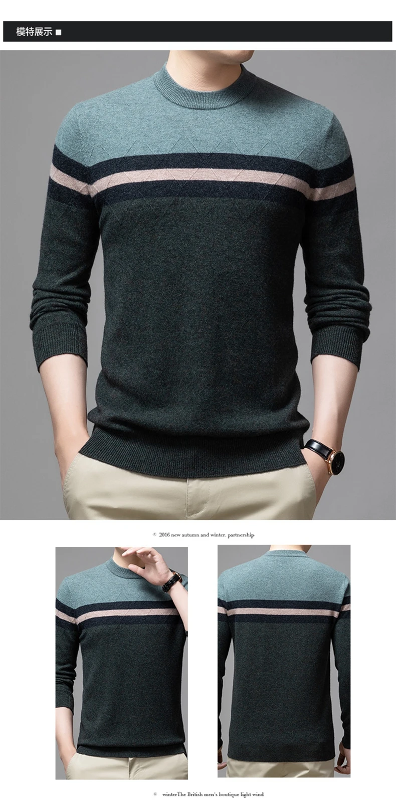Шерсть 100% Высший сорт толстый новый модный дизайнерский брендовый вязаный пуловер мужской свитер зимний полосатый Повседневный джемпер мужская одежда