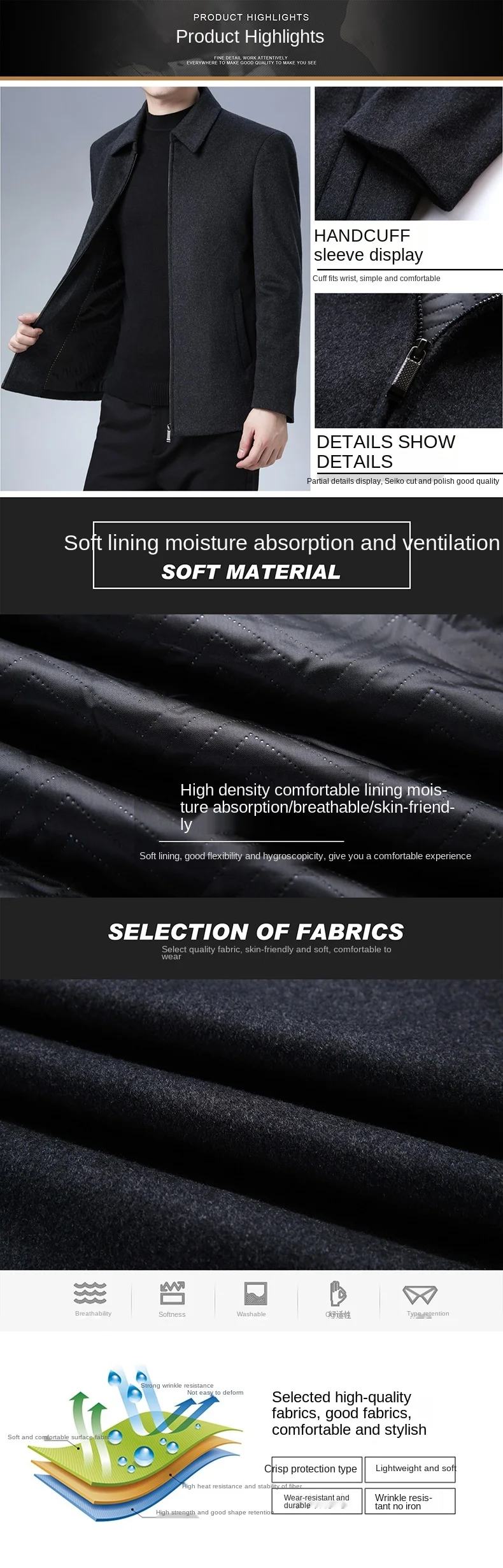 Новый бренд, Повседневная мода, Бейсбольный воротник, Осень-зима, М...