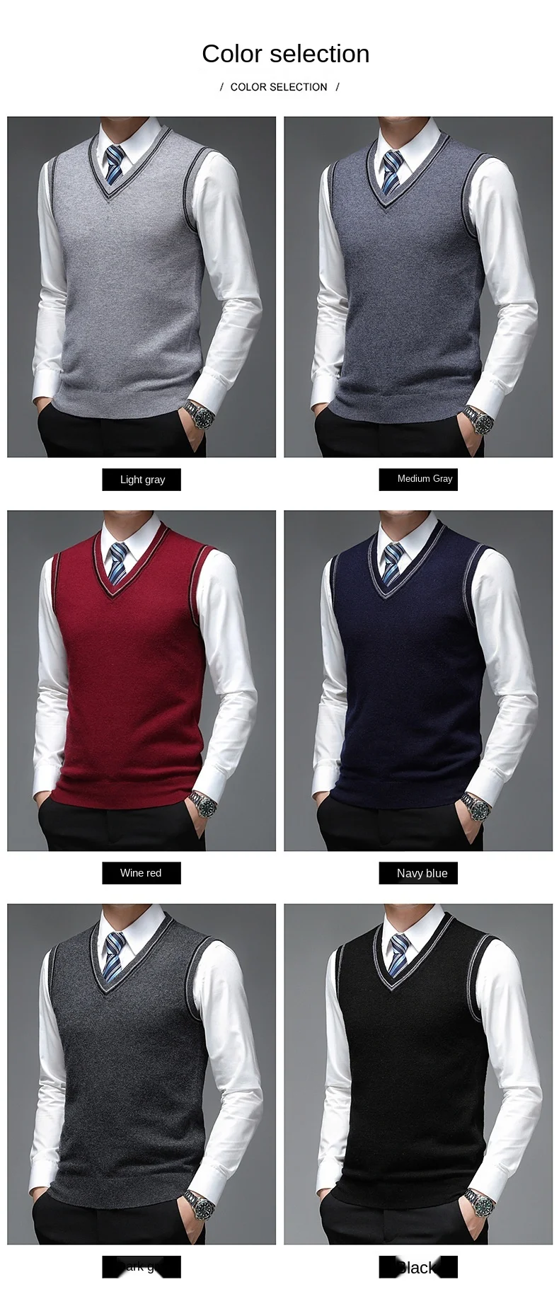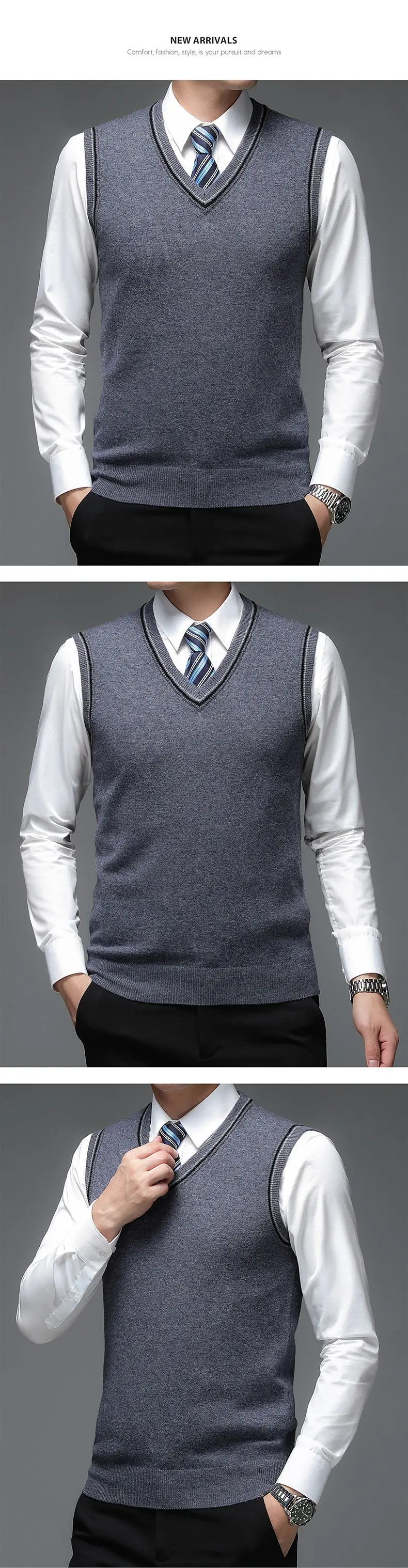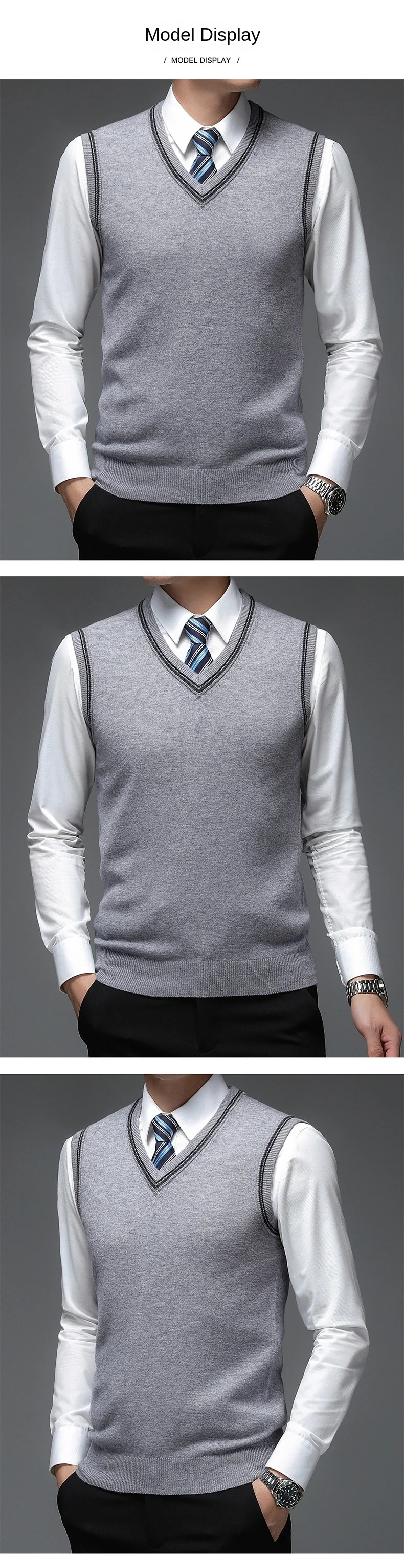 Пуловер мужской с V-образным вырезом, 6% шерсть, без рукавов