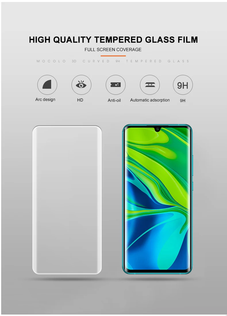 2 штук Mocolo UV жидкое олеофобное 3D 9 H Изогнутый край полное покрытие защитное стекло защитная пленка для на ксиоми ми нот 10 про лайт ми10 нот10 10про Xiaomi Mi Note 10 Lite Pro 10Pro 10Lite 68 128256 ГБ Global