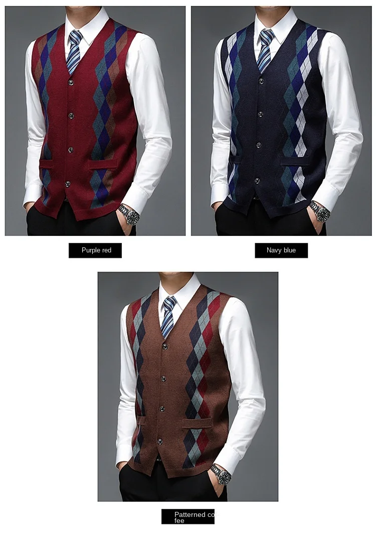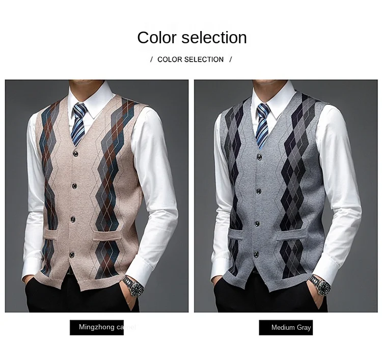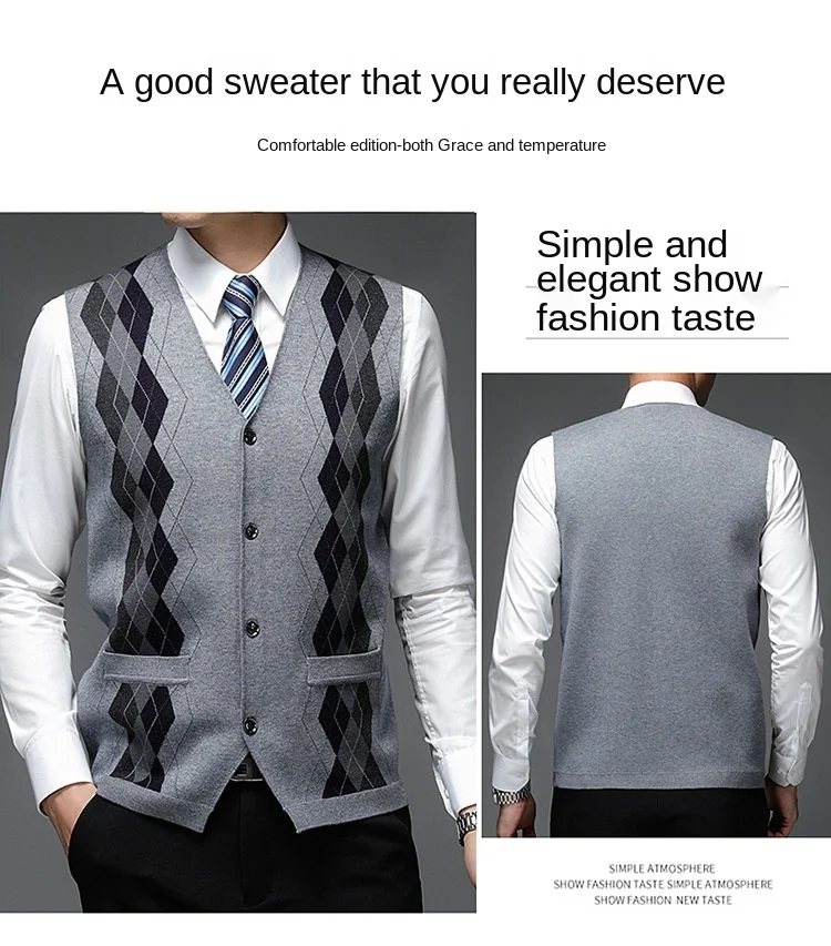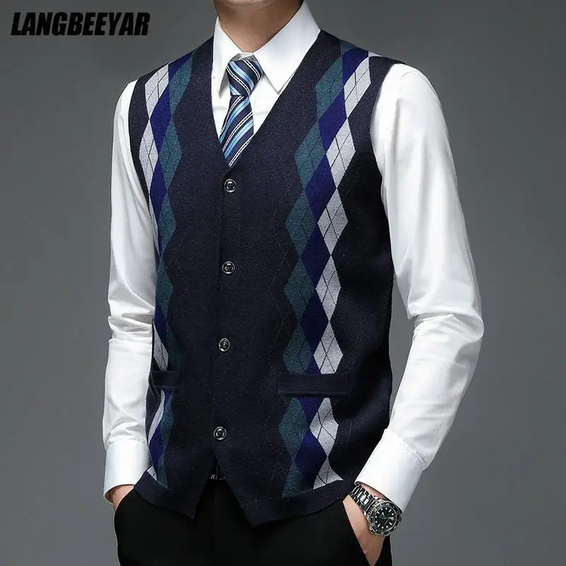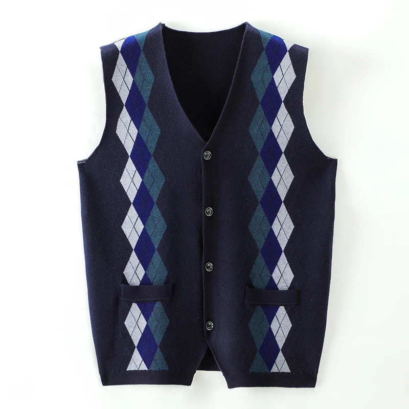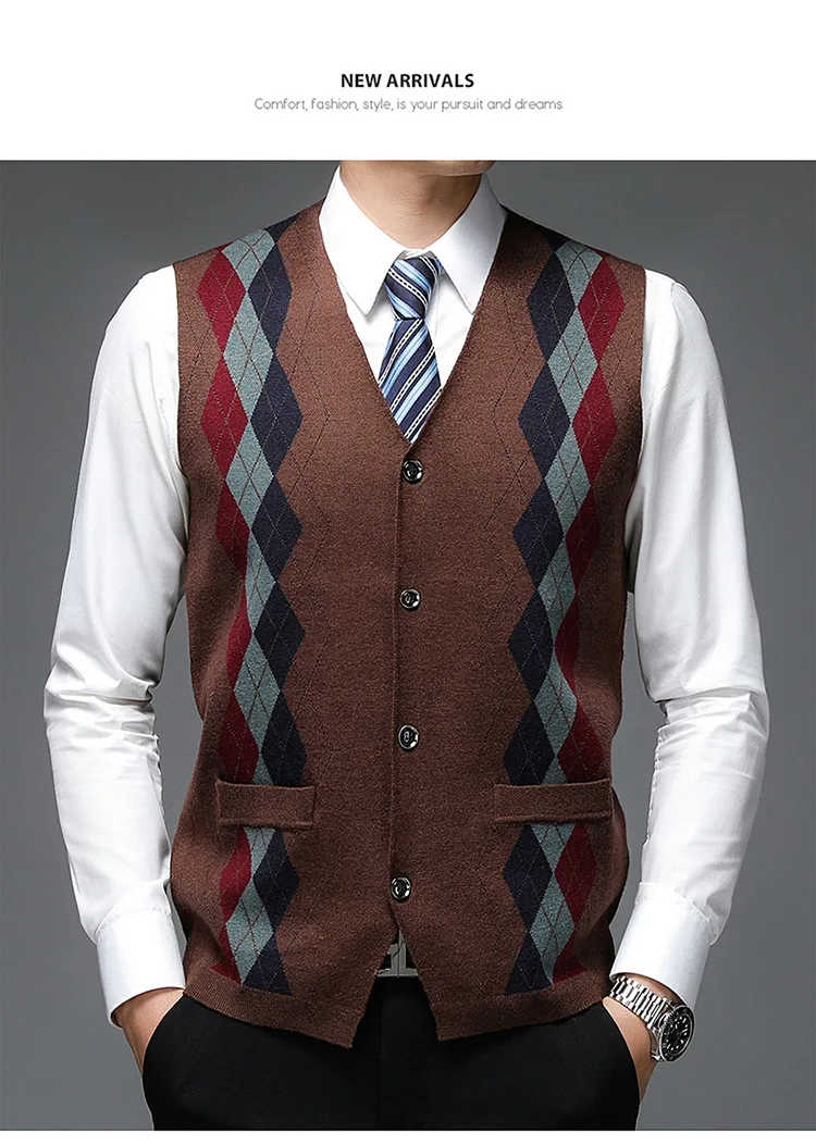 Пуловер мужской с V-образным вырезом, 6% шерсть, без рукавов