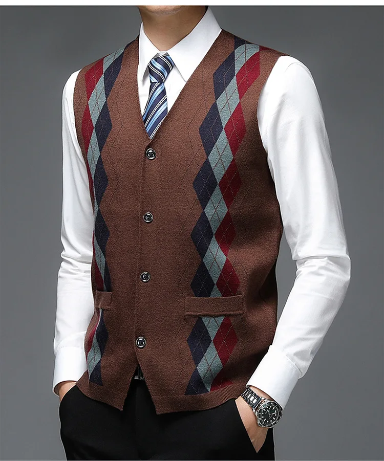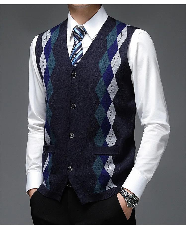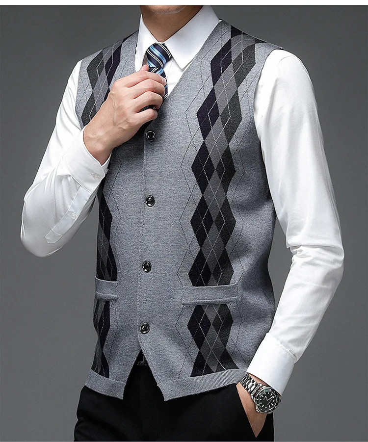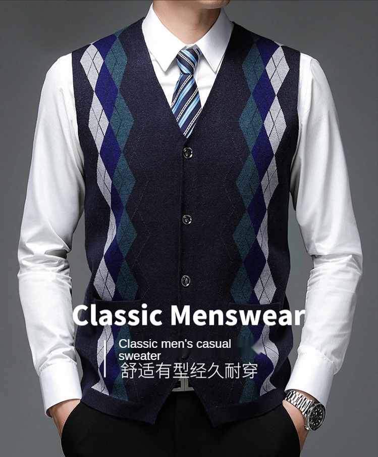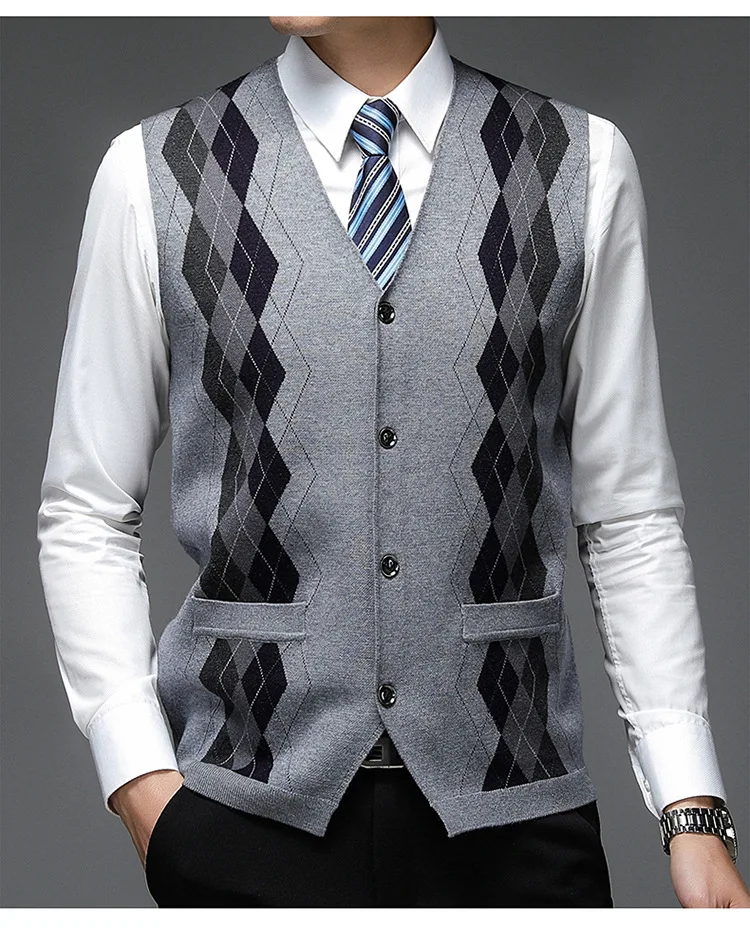 Пуловер мужской с V-образным вырезом, 6% шерсть, без рукавов