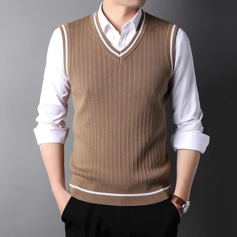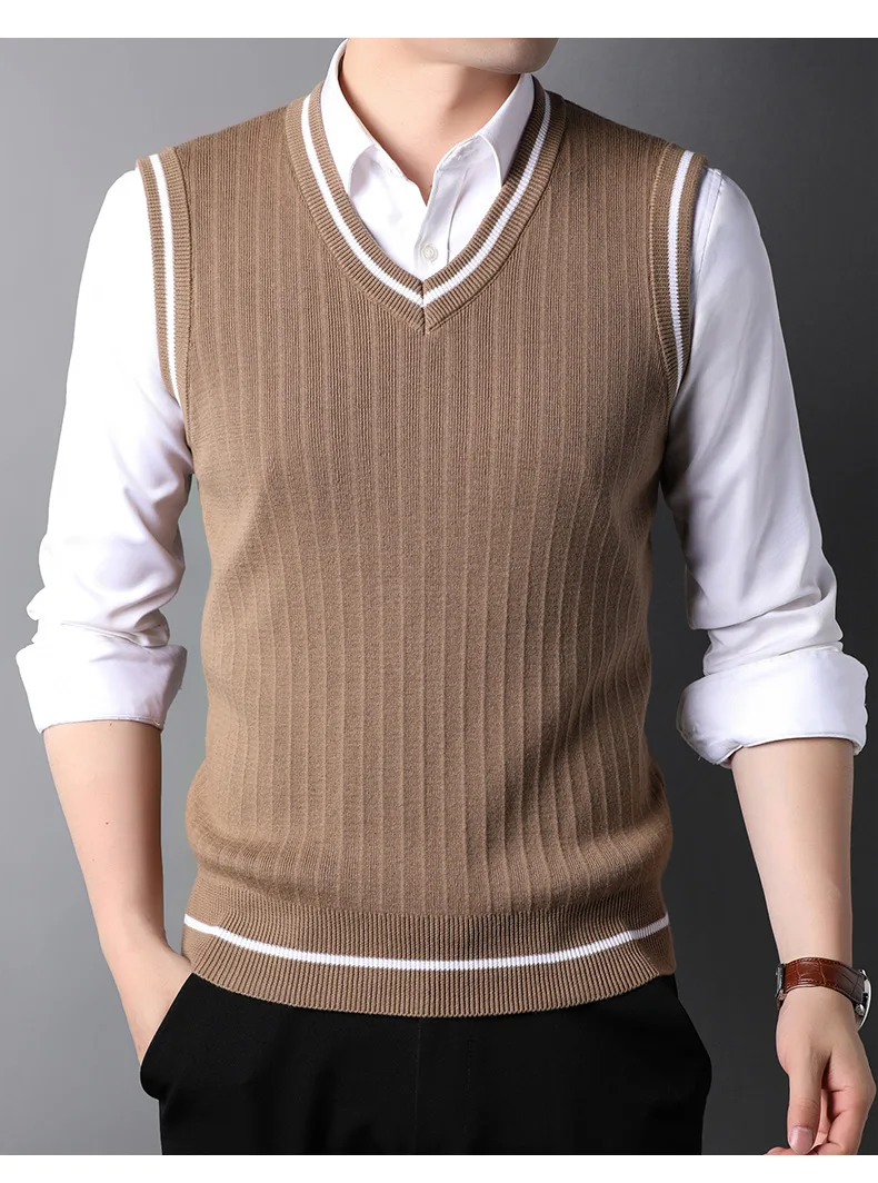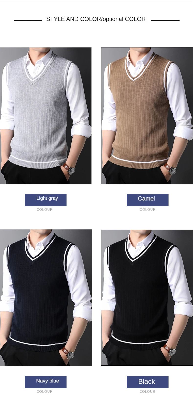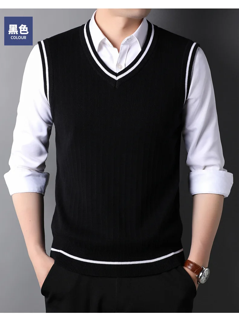 Пуловер мужской с V-образным вырезом, 6% шерсть, без рукавов