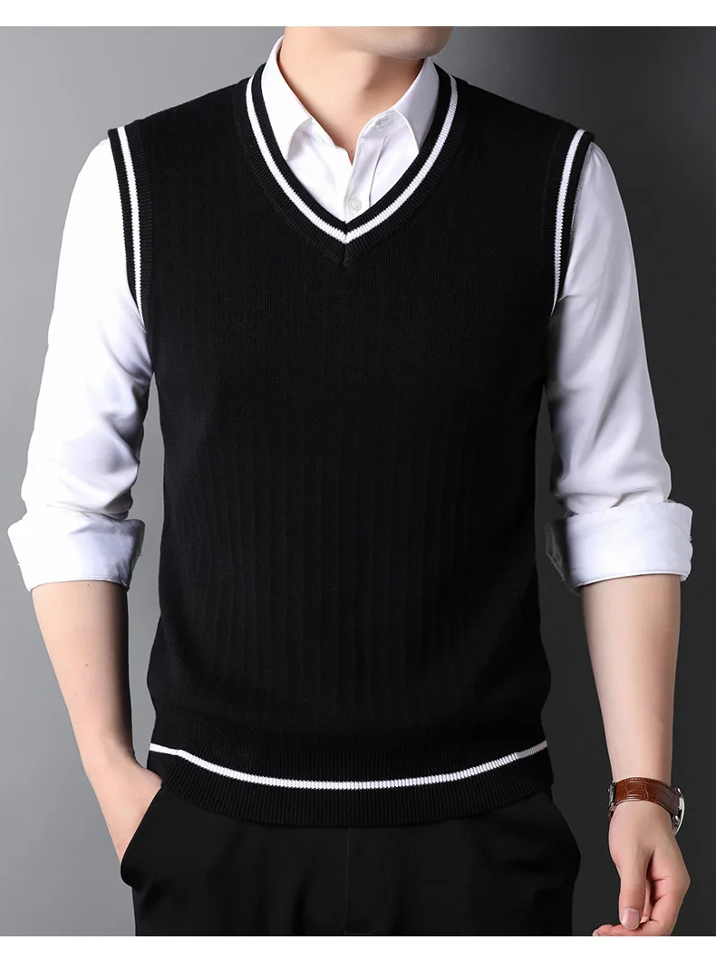 Высокое качество, новый осенне-зимний модный брендовый приталенный вязаный свитер с v-образным вырезом, мужской модный шерстяной жилет без рукавов, повседневная мужская одежда