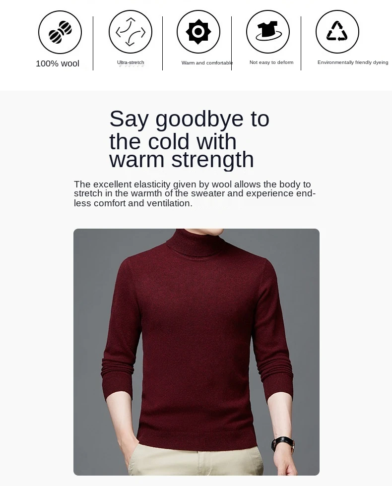 100% шерсть, высококачественный новый модный брендовый вязаный пуловер, теплый простой мужской свитер с высоким воротом, Осенний Повседневный джемпер, зимняя мужская одежда