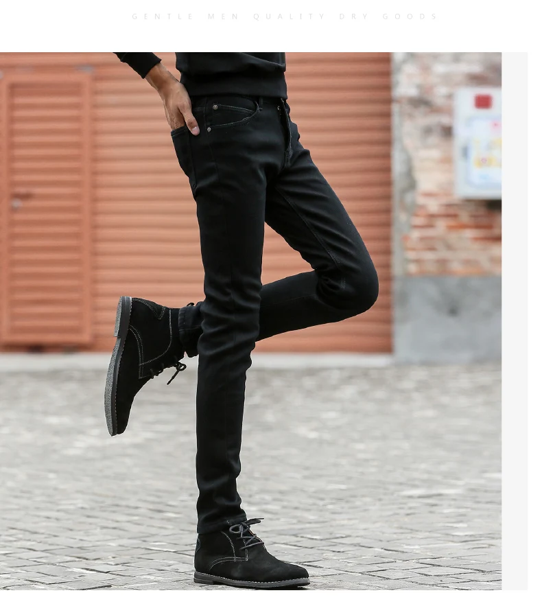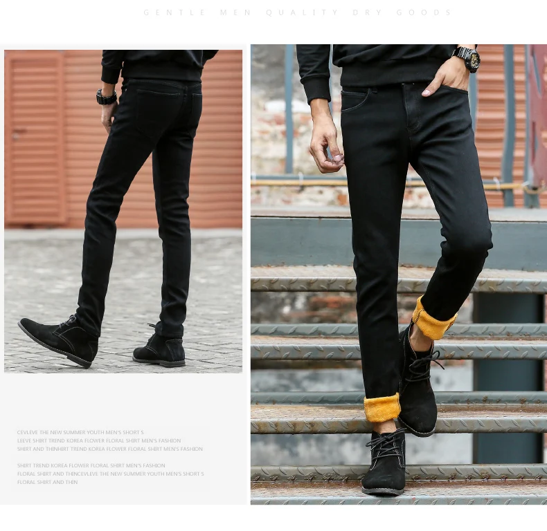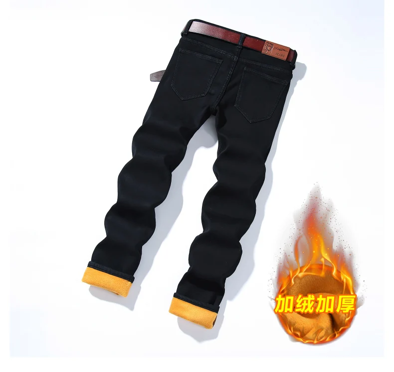 Зимние новые облегающие джинсы, мужские теплые джинсы, деловые повседневные эластичные плотные обтягивающие джинсовые брюки, Брендовые брюки черного цвета