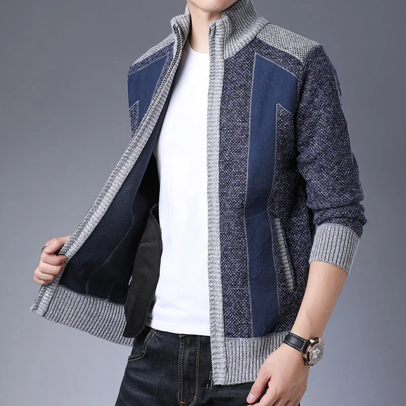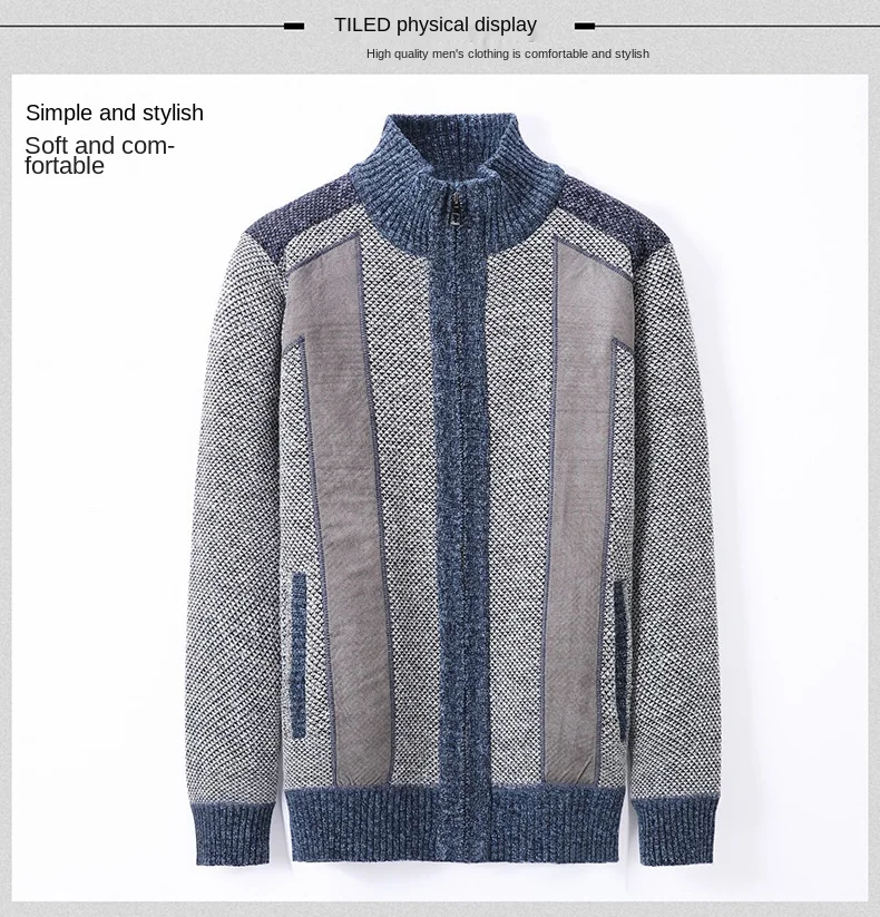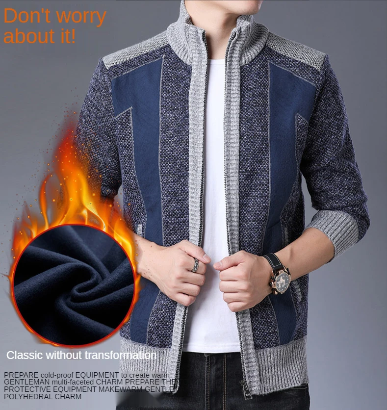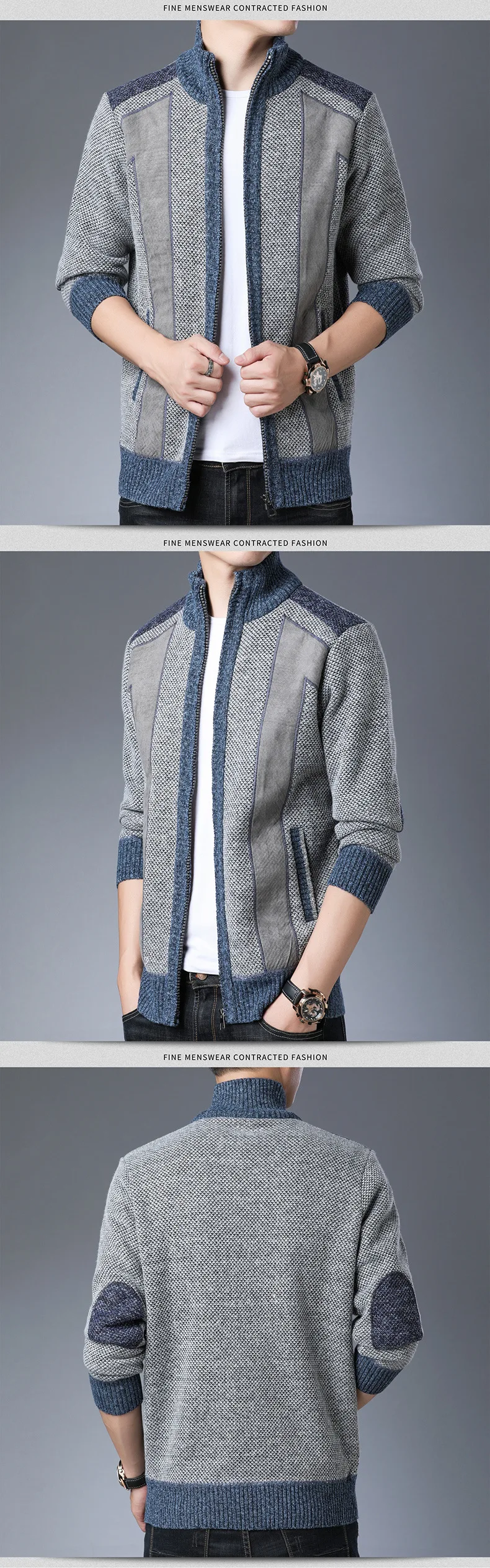 Плотный вельветовый теплый брендовый Повседневный модный лоскутный вязаный кардиган, новая мужская зимняя куртка с воротником-стойкой, ветровка на молнии