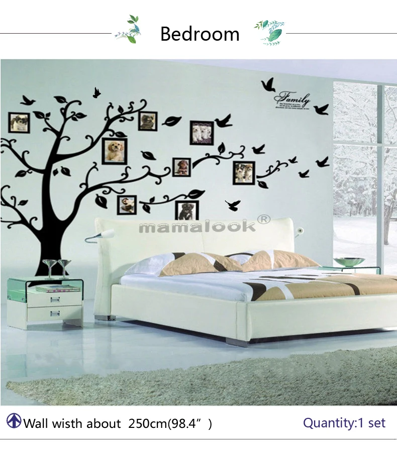 Бесплатная доставка, большой размер, 200*250 см79 * 99in, Черный 3D фото дерево, ПВХ наклейки на стенуклейкие Семейные настенные наклейки, роспись, искусство, Декор для дома