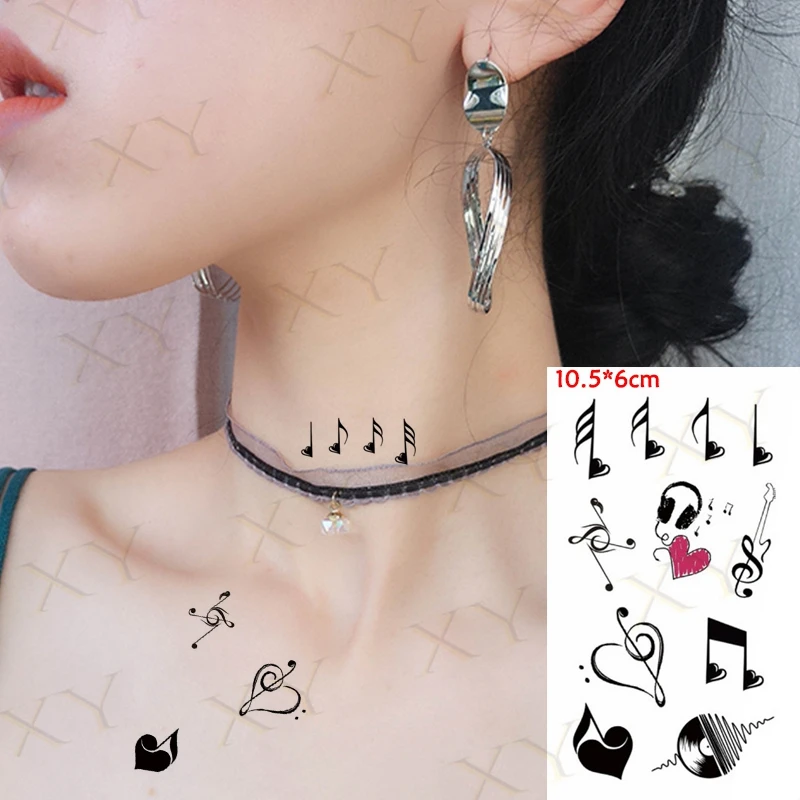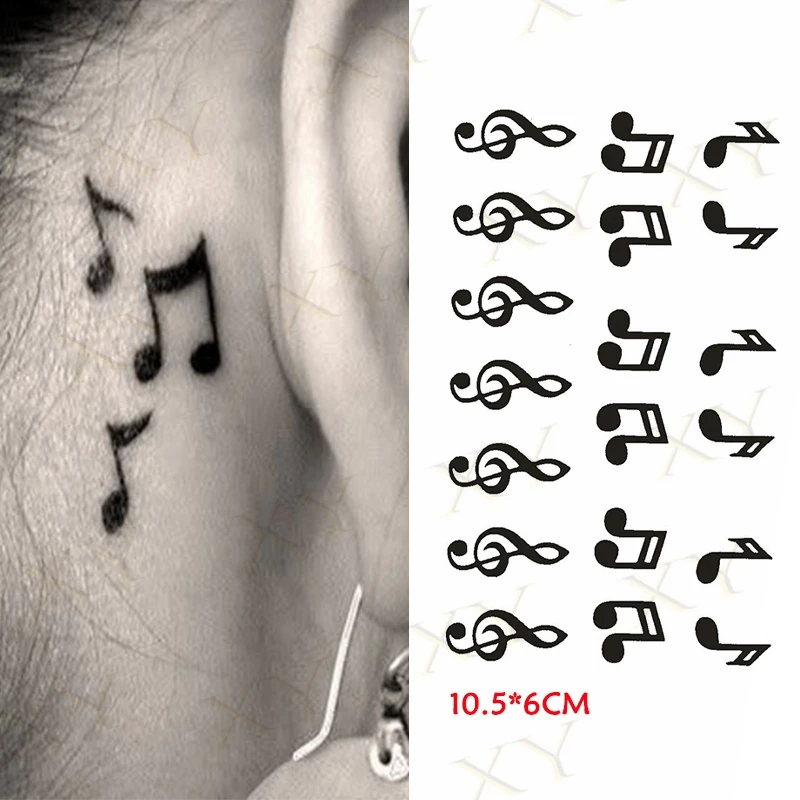 Водостойкая Временная тату-наклейка на уши, палец, музыкальные ноты, птица, звезды, линия, разрезы, хна, тату флэш-тату, искусственная для женщин и девушек