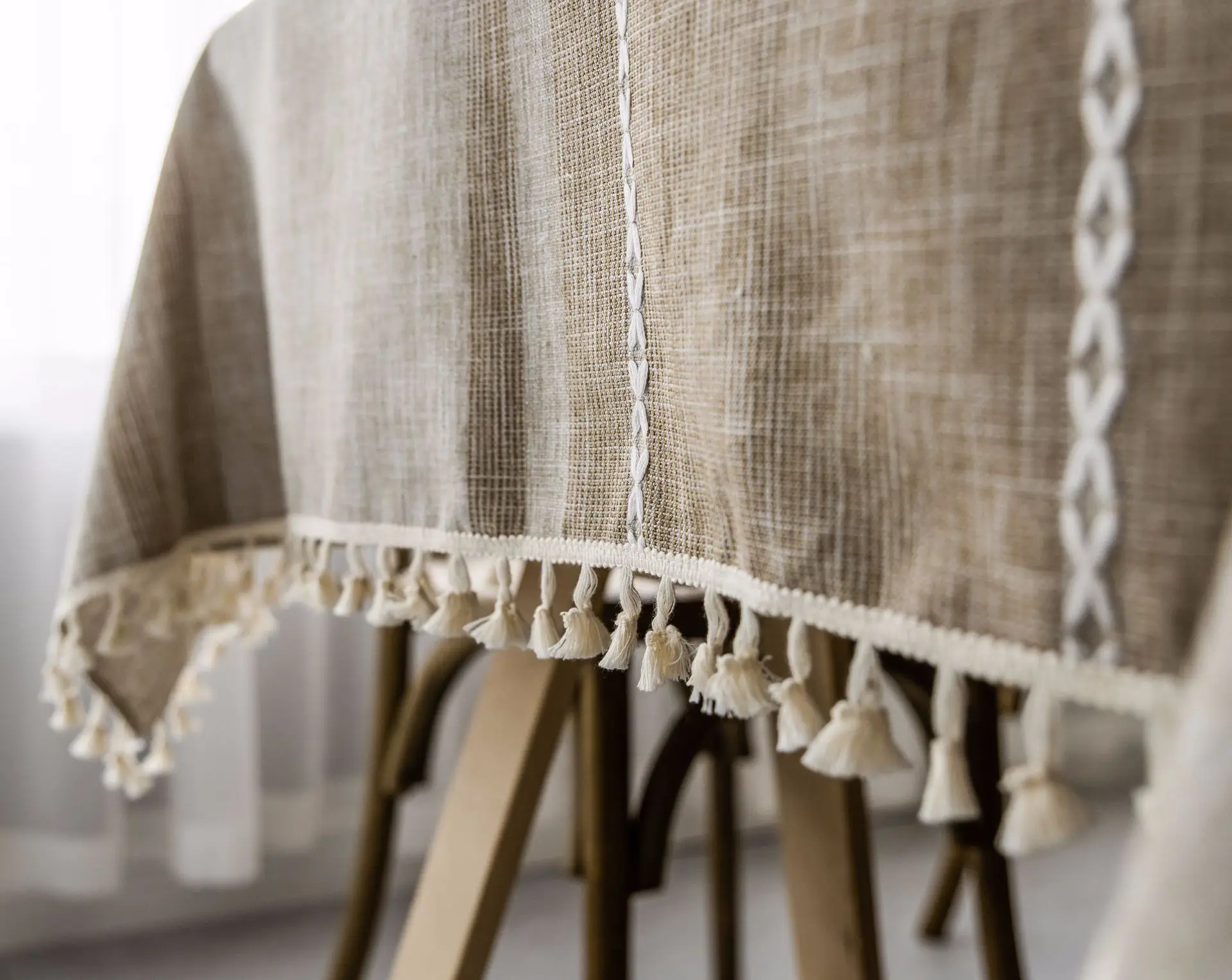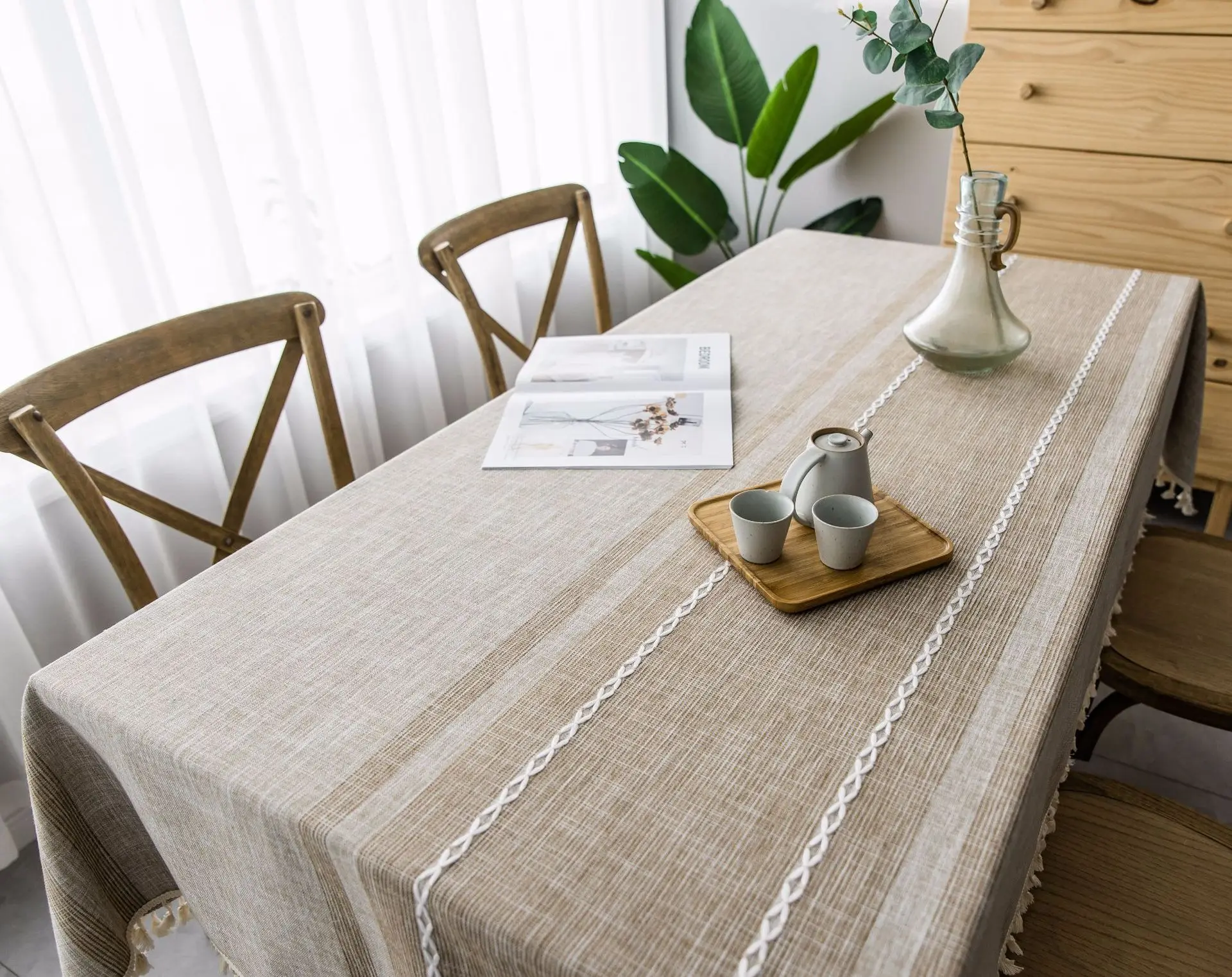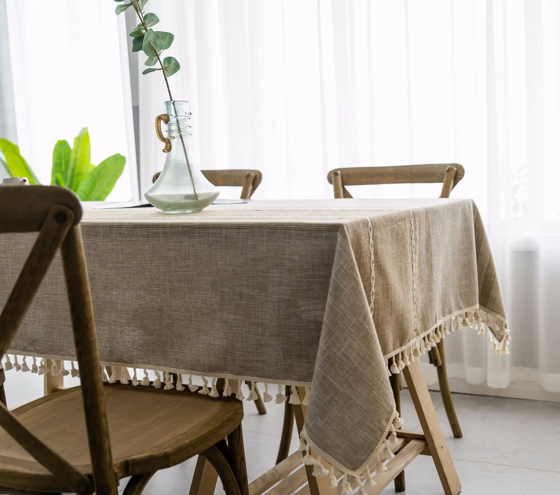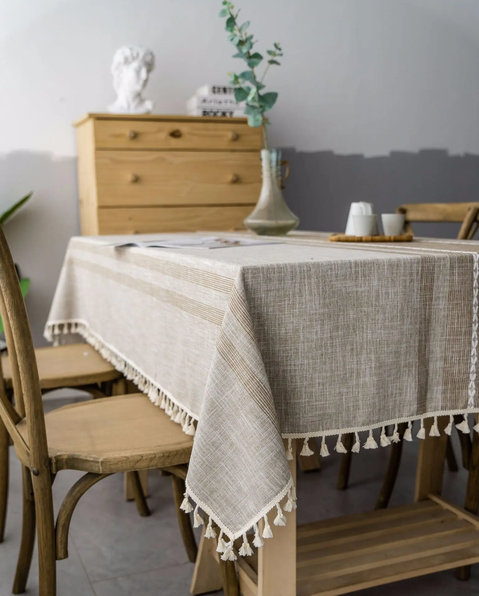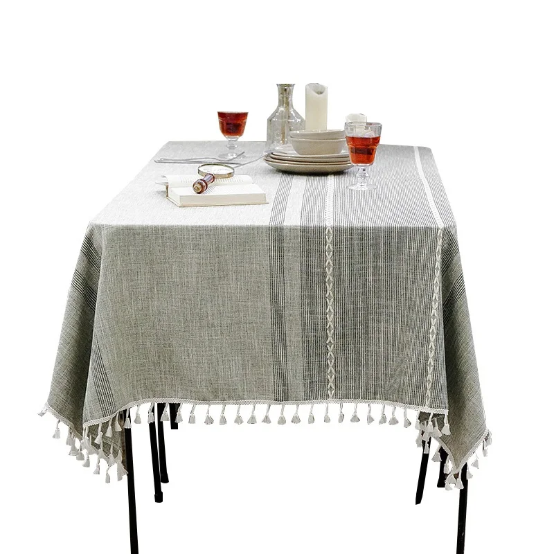 Скатерть с бахромой, японская серая Пылезащитная скатерть, прямоугольная, для дома и гостиной, декоративный хлопковый льняной коврик для стола