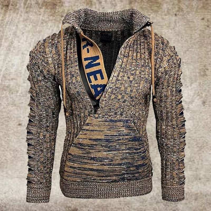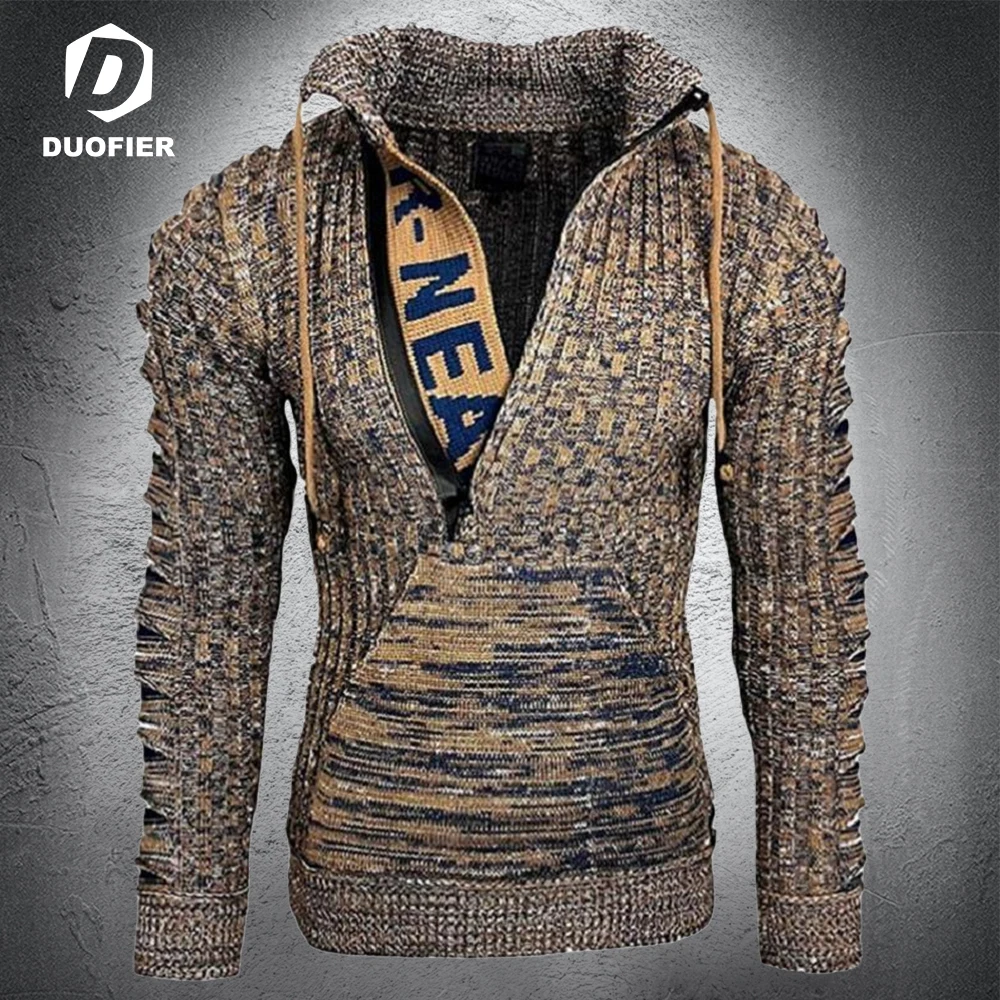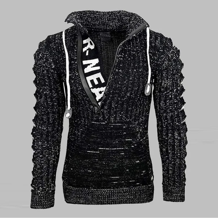 Осень-зима мужской свитер в винтажном стиле, с капюшоном, с застежк...