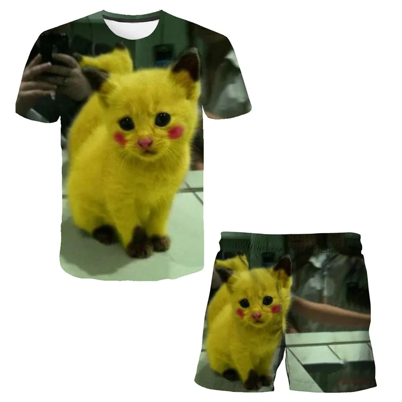 Детский летний комплект из 2 предметов, футболка и шорты с 3D покем...