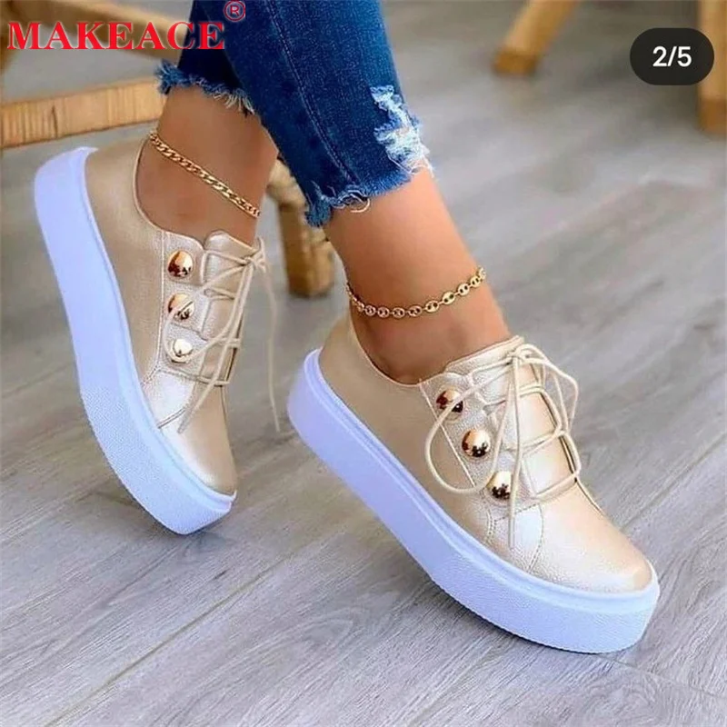 Женские кроссовки на платформе, Вулканизированная подошва, круглый ...