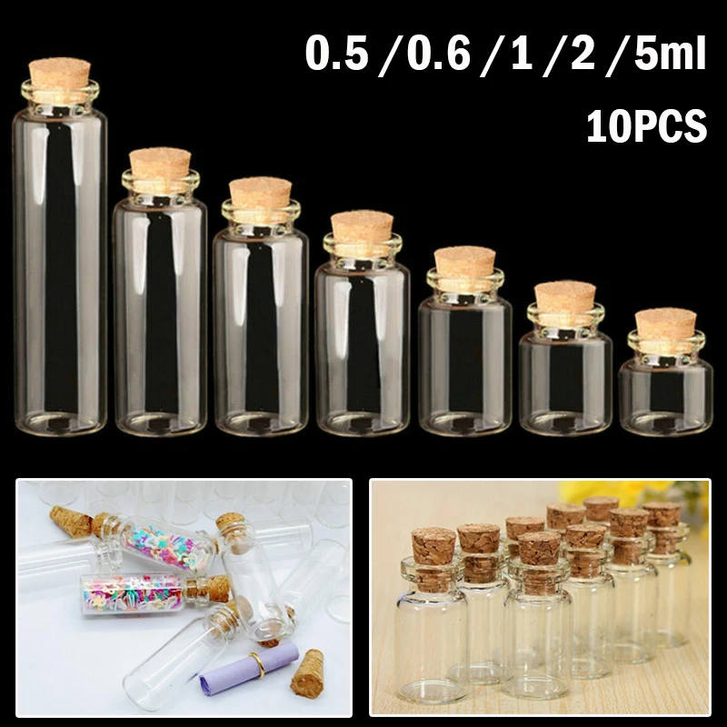 10 шт., маленькие стеклянные флаконы с пробкой, 13x24 мм, 16x35 мм