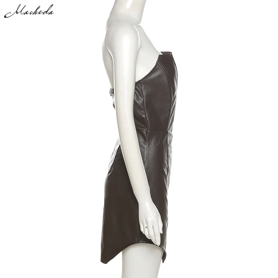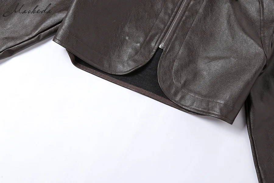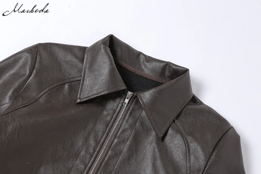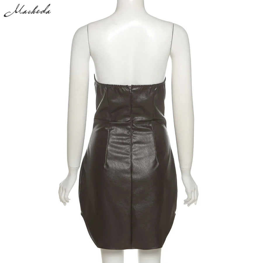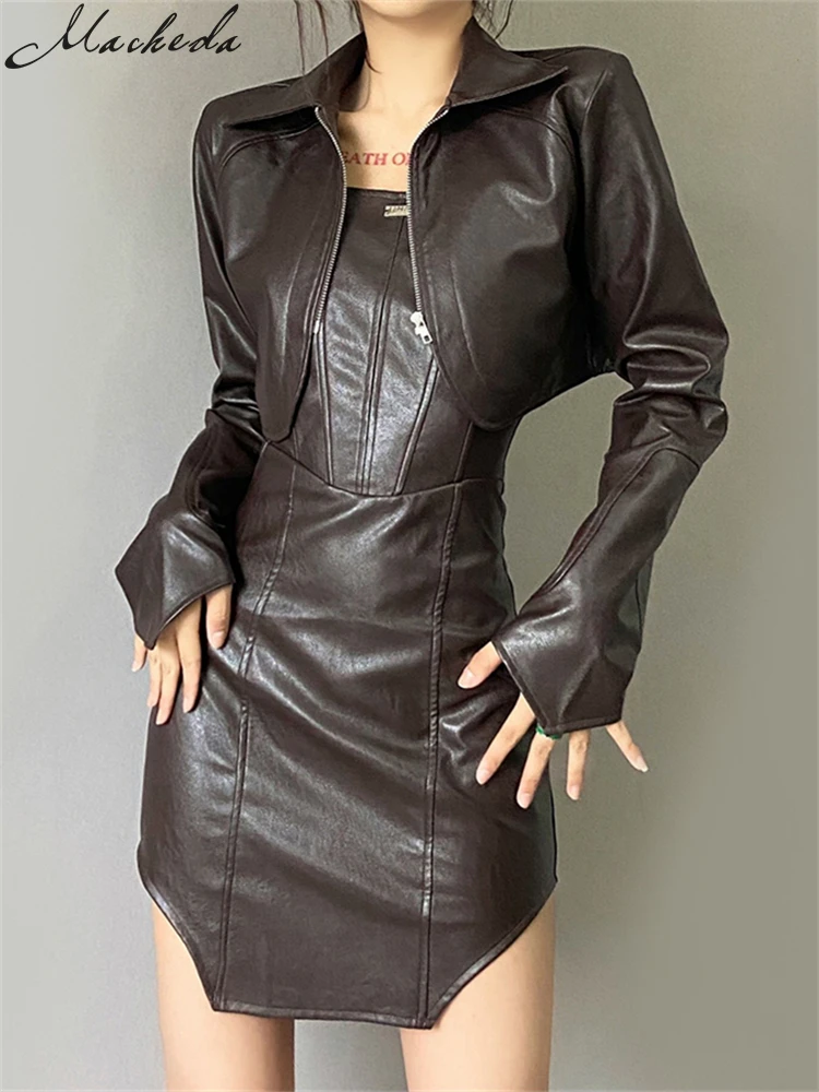 Machedaосеннее Новое байкерское Платье из искусственной кожи в комплекте с курткой из искусственной кожи темно-коричневая верхняя одежда на молнии, платье с открытой спиной из двух предметов
