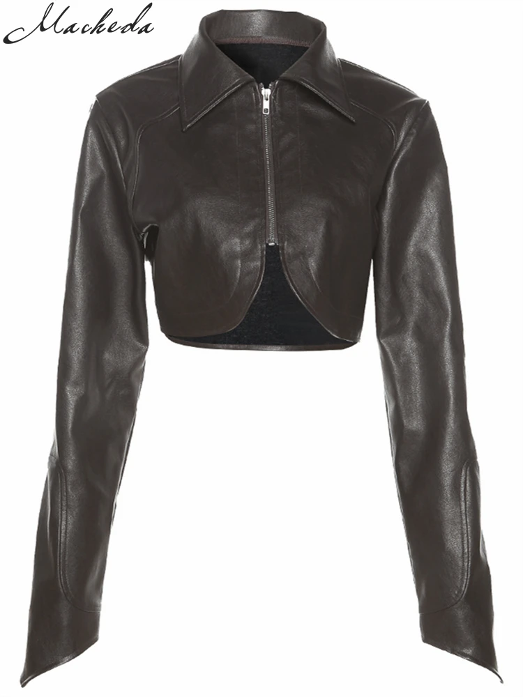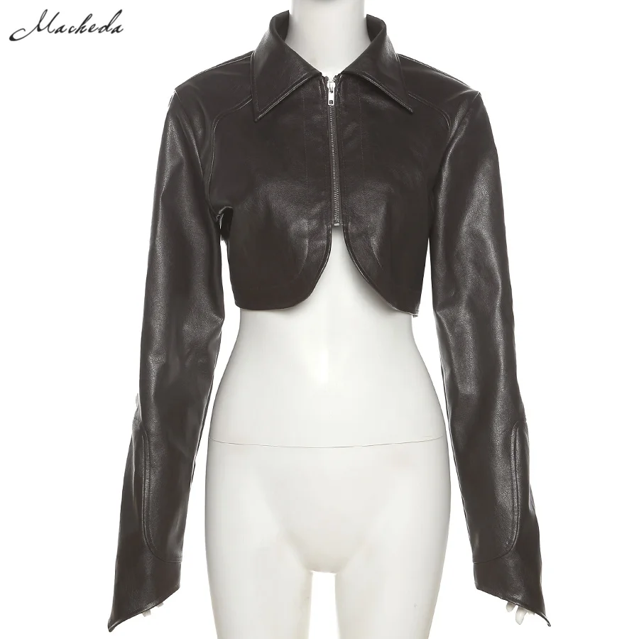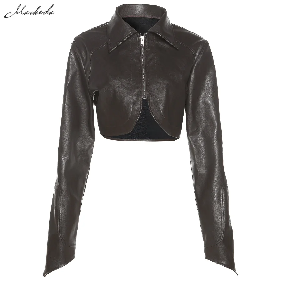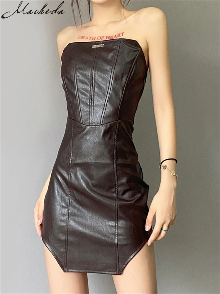Machedaосеннее Новое байкерское Платье из искусственной кожи в комплекте с курткой из искусственной кожи темно-коричневая верхняя одежда на молнии, платье с открытой спиной из двух предметов
