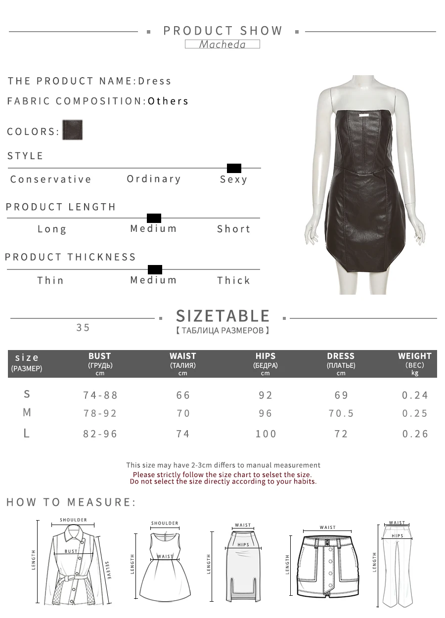 Мини-платье из ПУ кожи, с отложным воротником, без бретелек