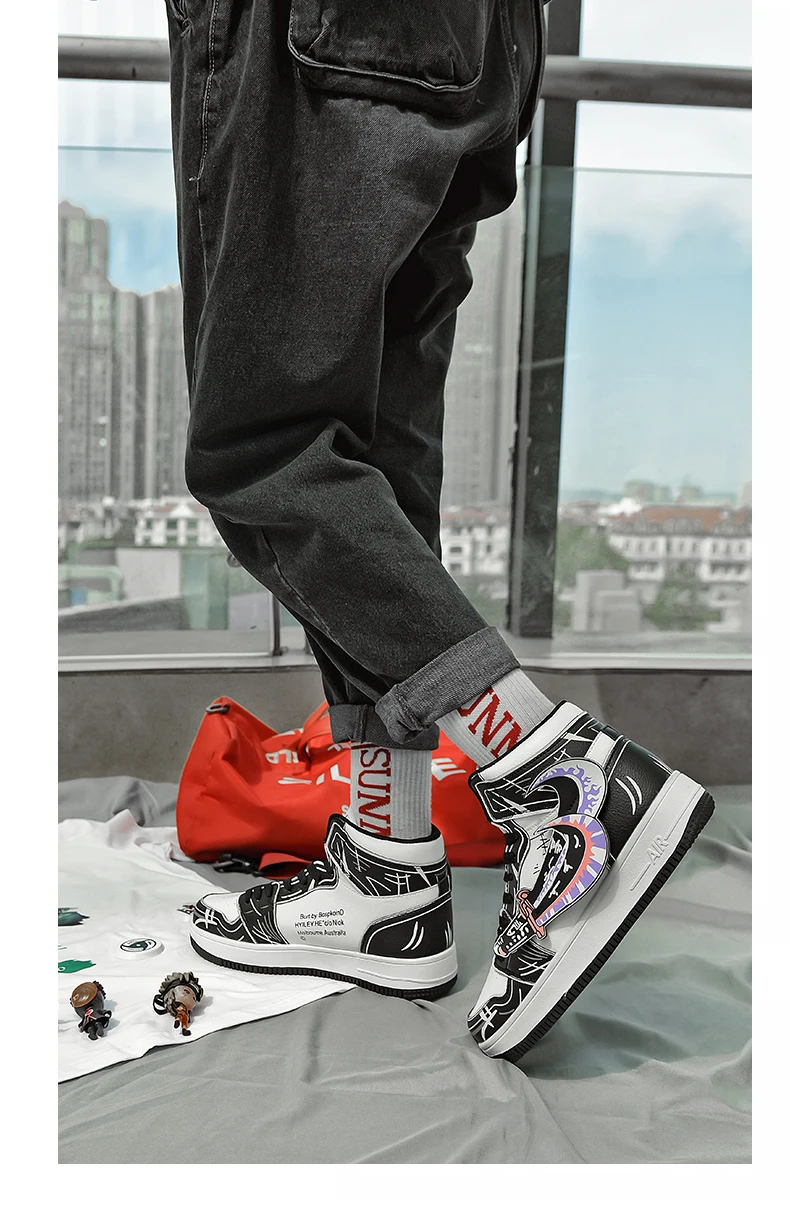 Мужские высокие вулканизированные туфли, дышащие износостойкие крос...